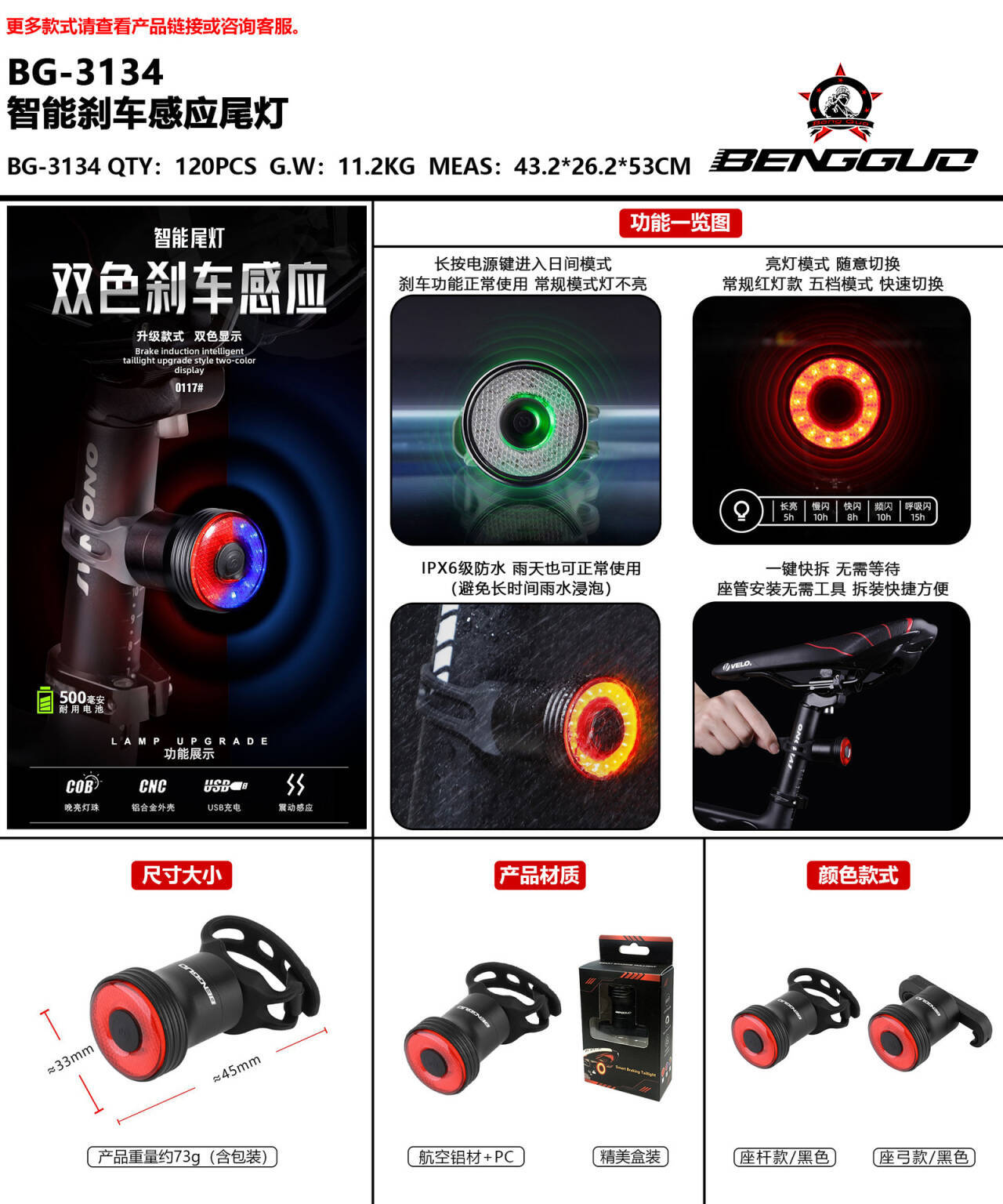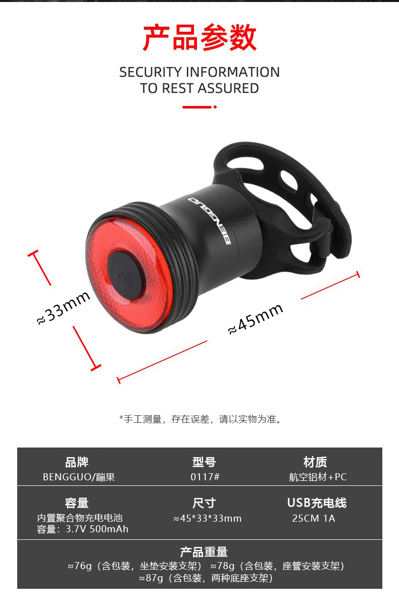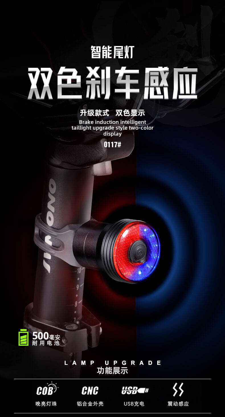 크로스 보더 자전거 테일 라이트 산악 자전거 usb 충전 지능형 브레이크 유도 야간 라이딩 라이트 점프 과일 라이딩 장비스토어 가기