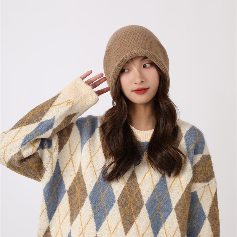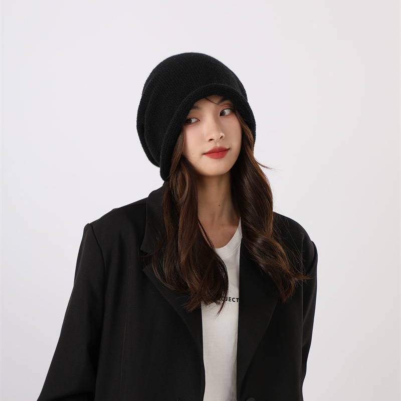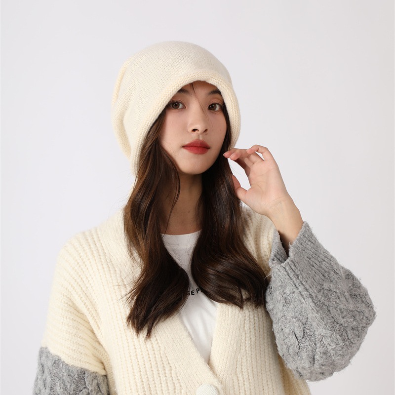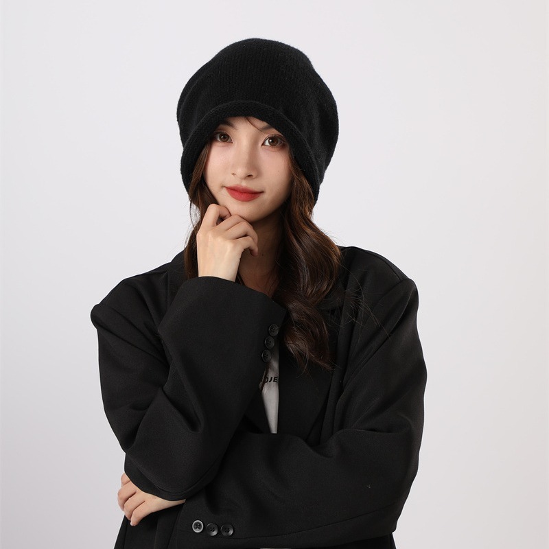 인터넷 연예인 힙 모자 여자의 가을과 겨울 일본식 얼굴 모양 작은 Baotou 차가운 모자 큰 머리 랩 졸라매는 끈 컬링 니트 울 모자스토어 가기