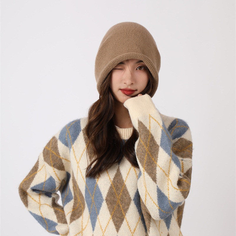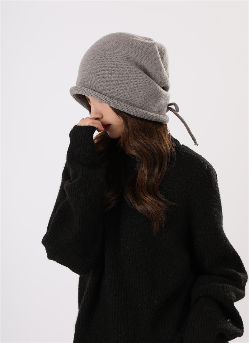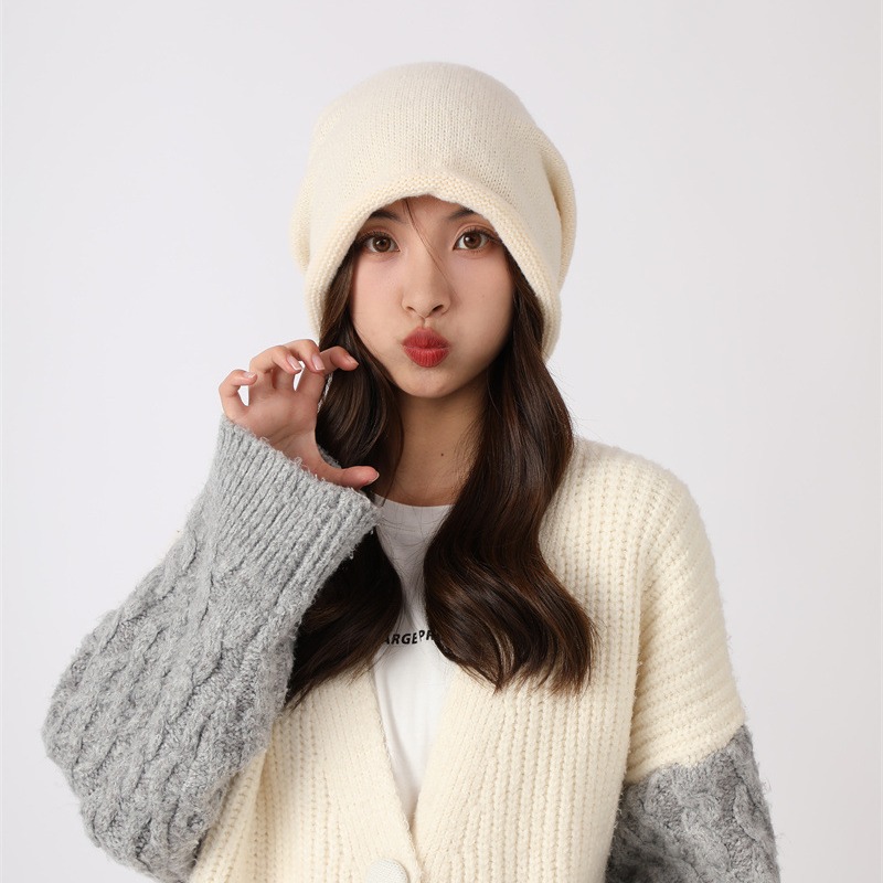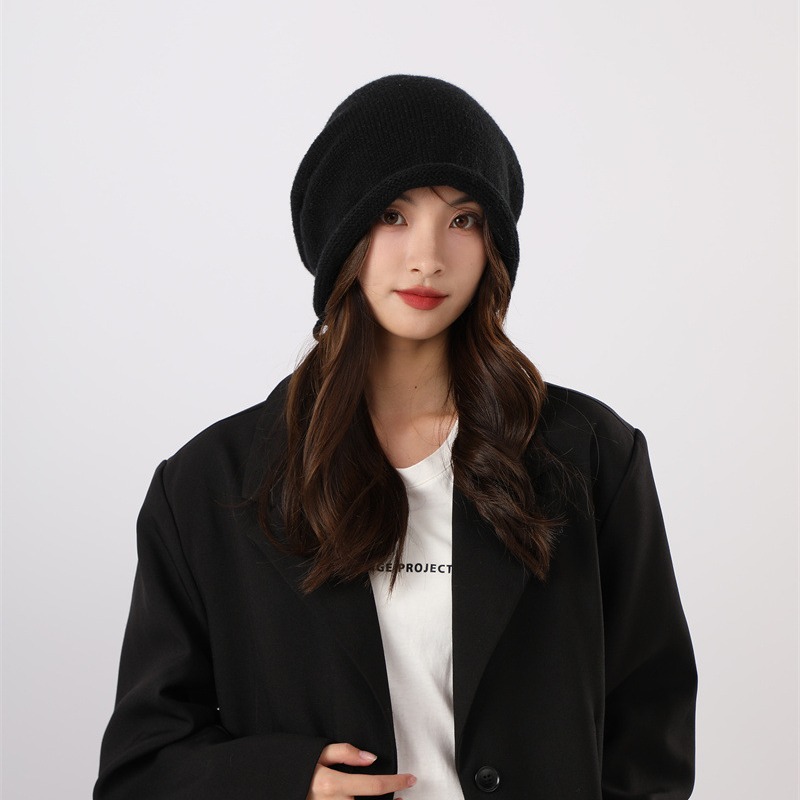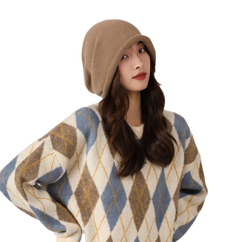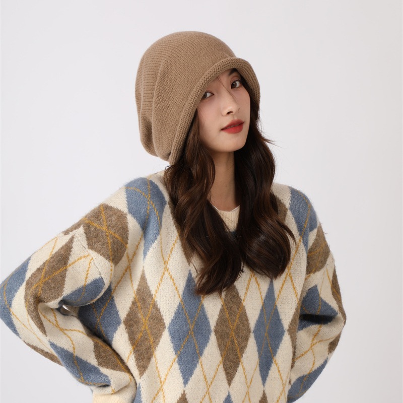 인터넷 연예인 힙 모자 여자의 가을과 겨울 일본식 얼굴 모양 작은 Baotou 차가운 모자 큰 머리 랩 졸라매는 끈 컬링 니트 울 모자