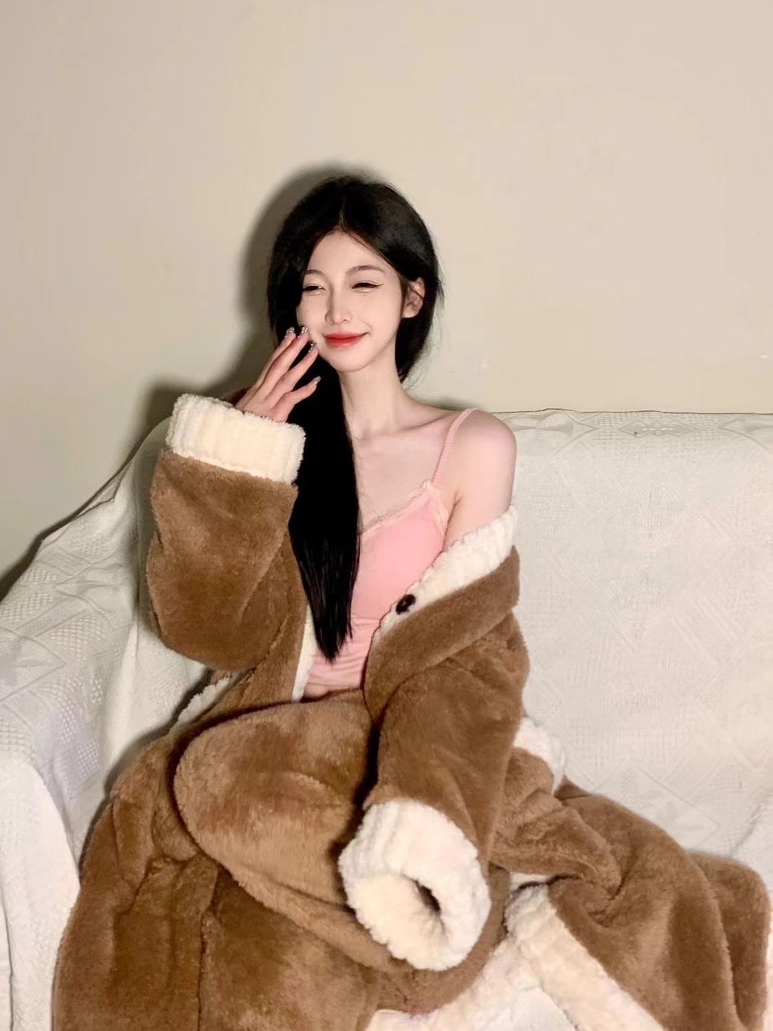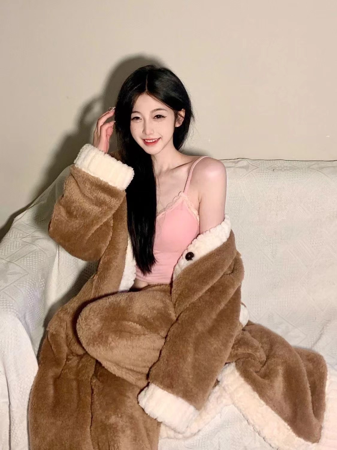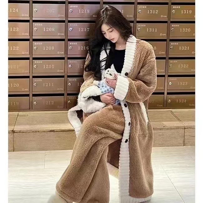 산호 양털 잠옷 여자의 가을과 겨울 새로운 인터넷 연예인 바람 두꺼운 따뜻한 봉제 잠옷 바지 고급 홈 세트스토어 가기