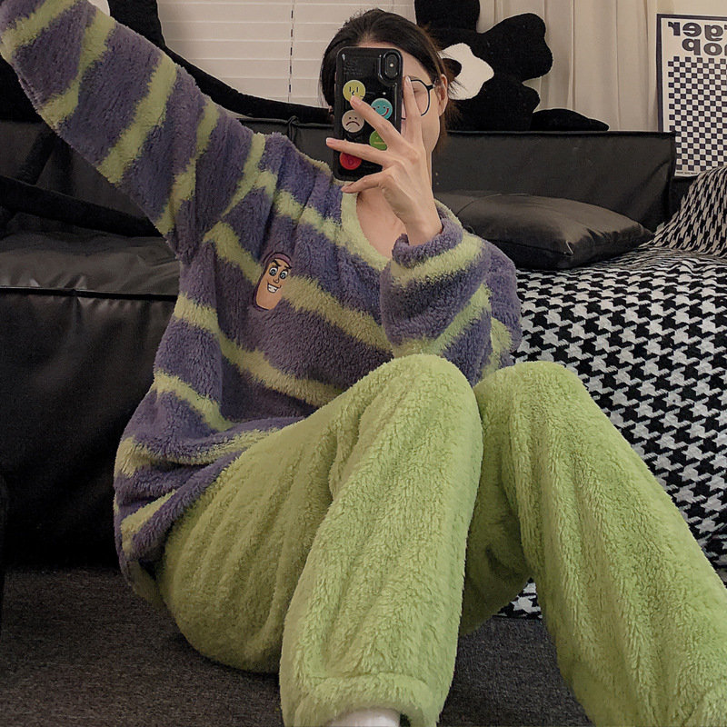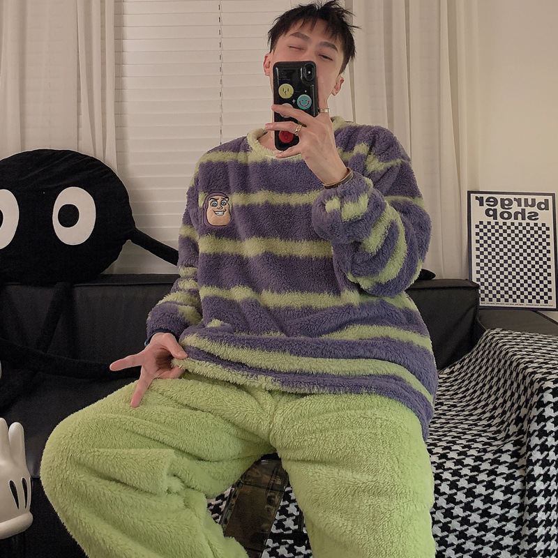 Buats Lightyear 커플 잠옷 여자의 겨울 산호 양털 두꺼운 따뜻한 만화 귀여운 플란넬 남자의 가정 옷 세트