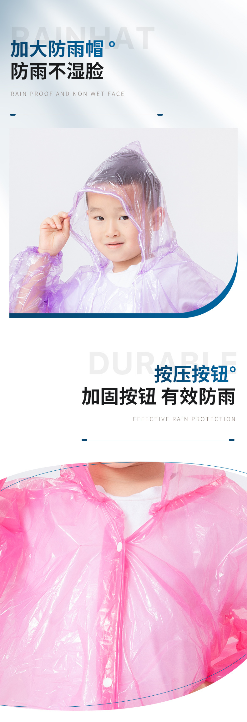 결합 된 투명 어린이 일회용 비옷 전신 아기 학생 유치원 길어진 표류 두꺼운 판초 공장