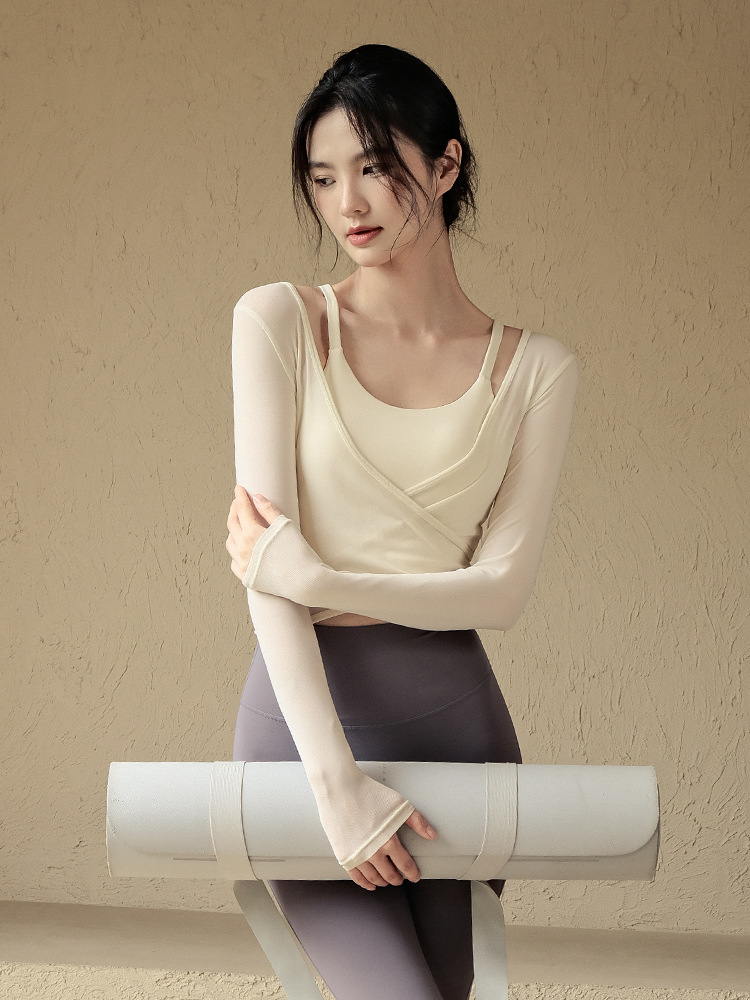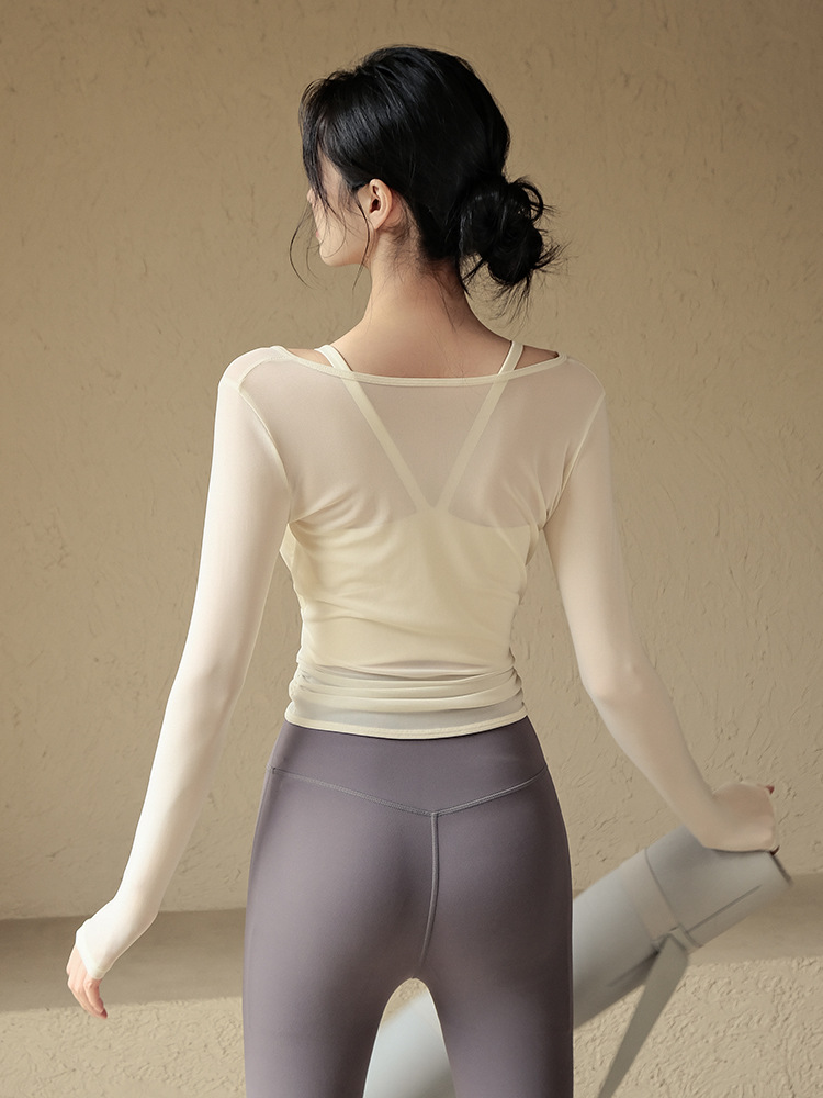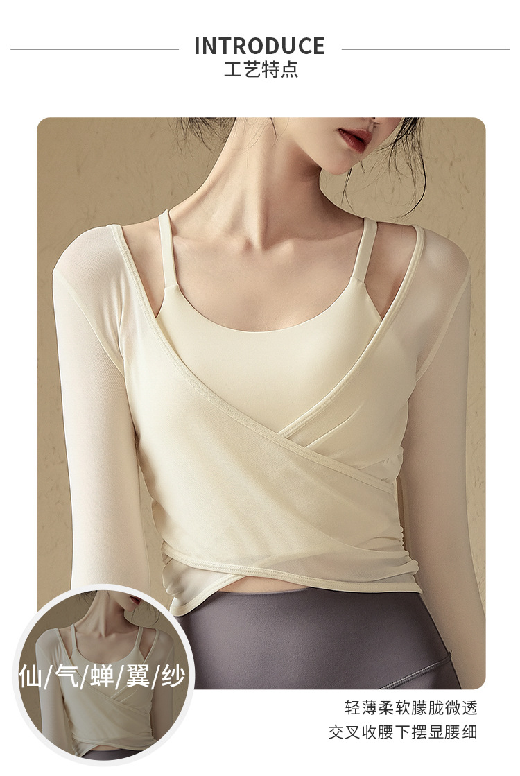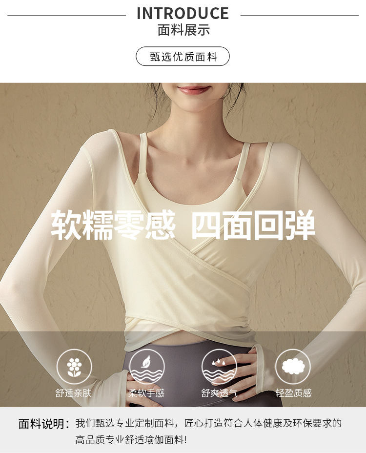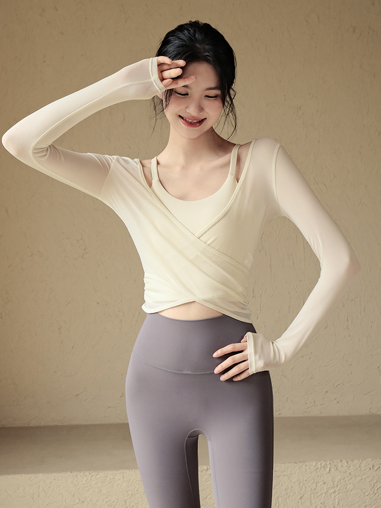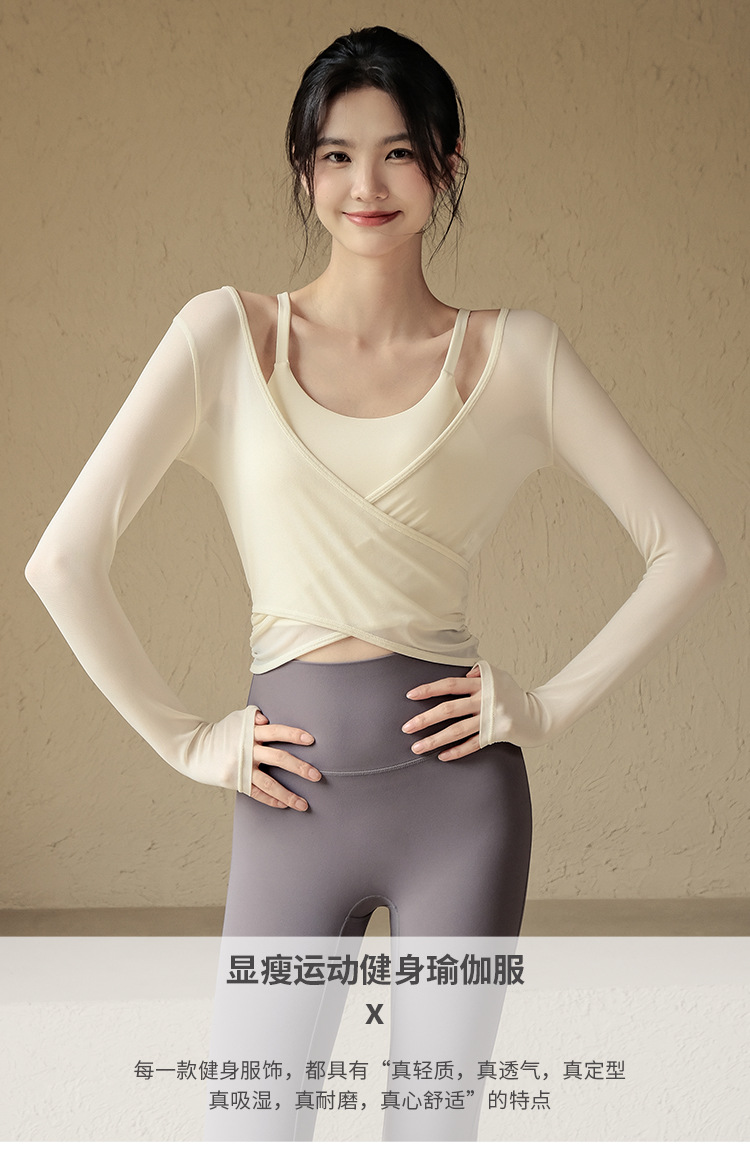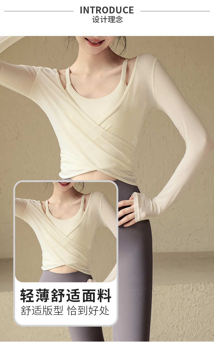 요가 의류 세트 여성의 가을과 겨울 스포츠 탑 가슴 패드 우아한 슬리밍 블라우스 필라테스 훈련 피트니스 긴 소매