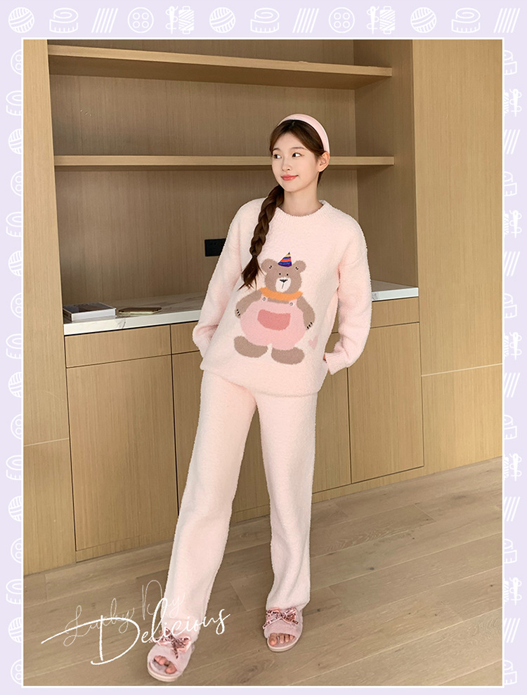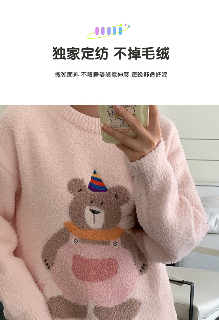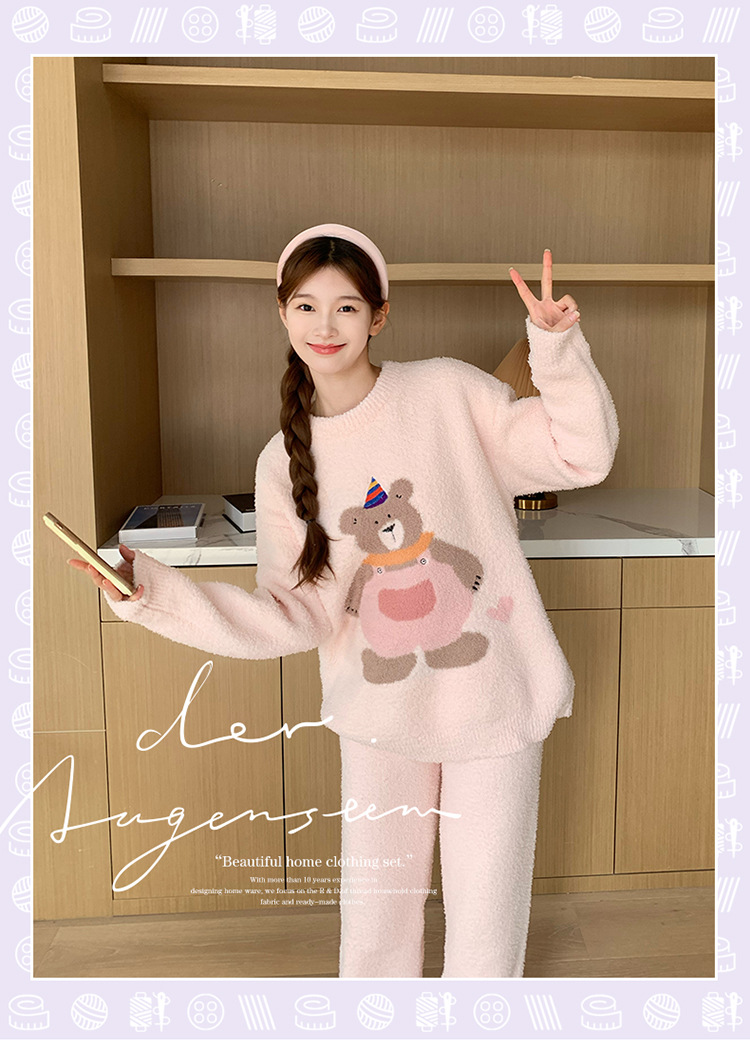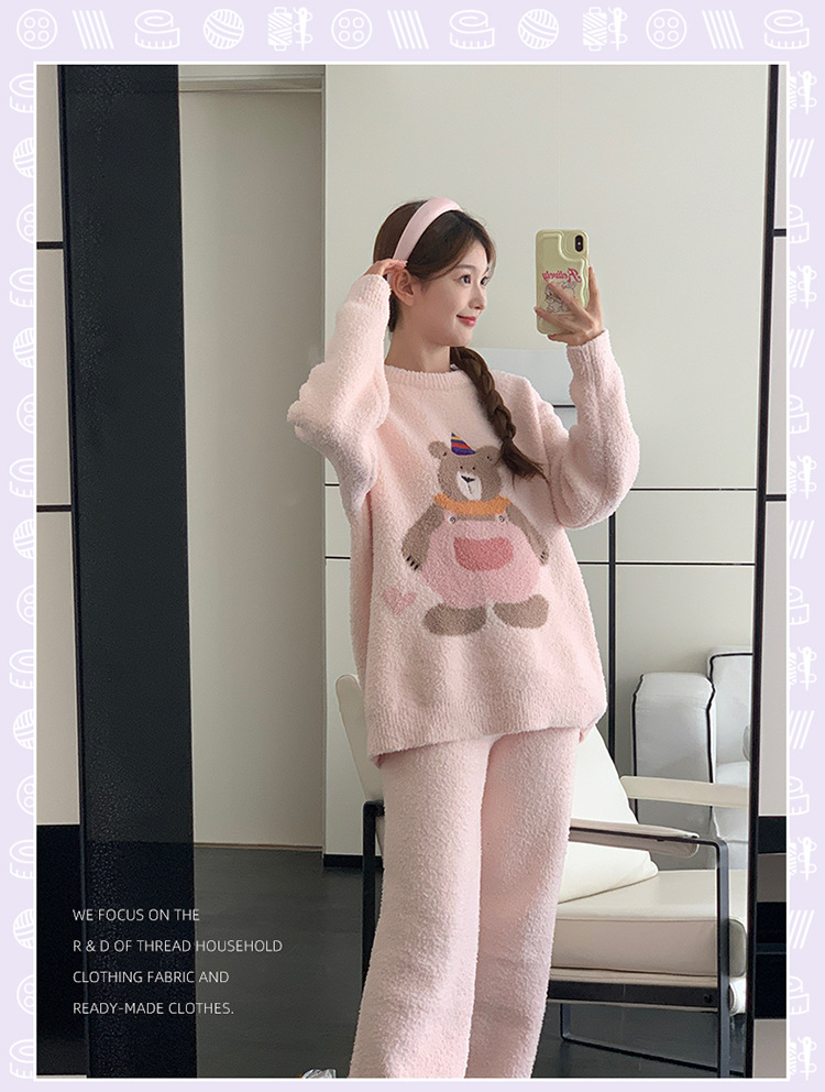 부드러운 잠옷 여자의 가을과 겨울 두꺼운 따뜻한 니트 만화 곰 나이 감소 아웃웨어 가정 옷 세트