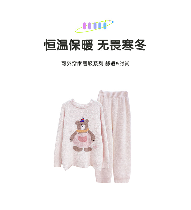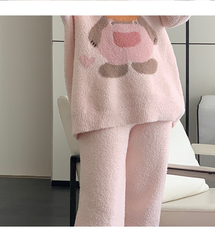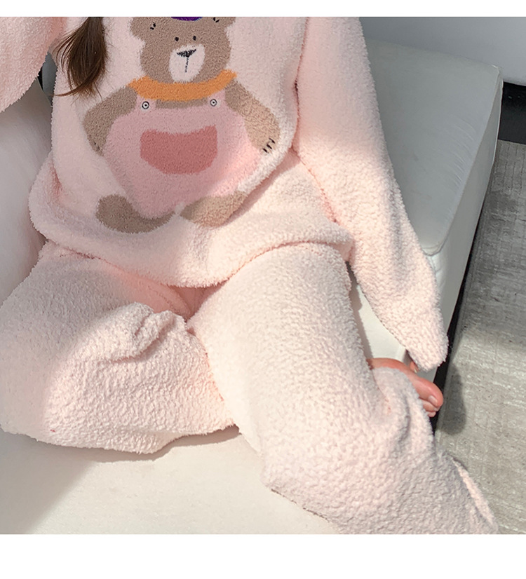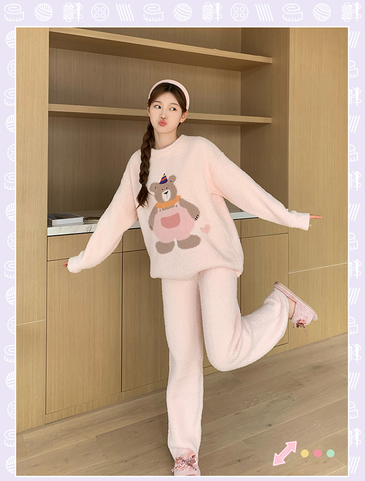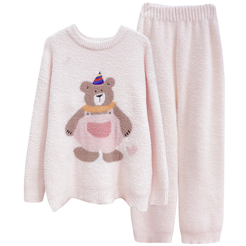 부드러운 잠옷 여자의 가을과 겨울 두꺼운 따뜻한 니트 만화 곰 나이 감소 아웃웨어 가정 옷 세트