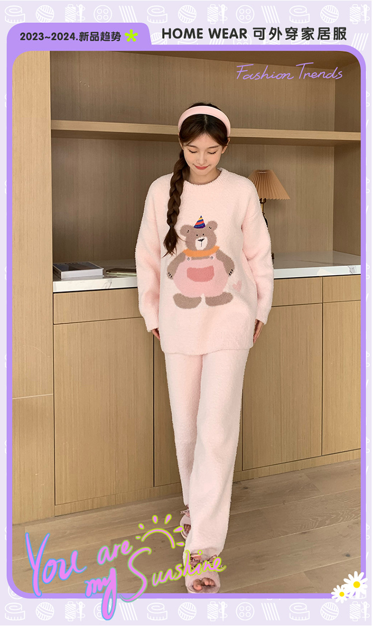부드러운 잠옷 여자의 가을과 겨울 두꺼운 따뜻한 니트 만화 곰 나이 감소 아웃웨어 가정 옷 세트스토어 가기