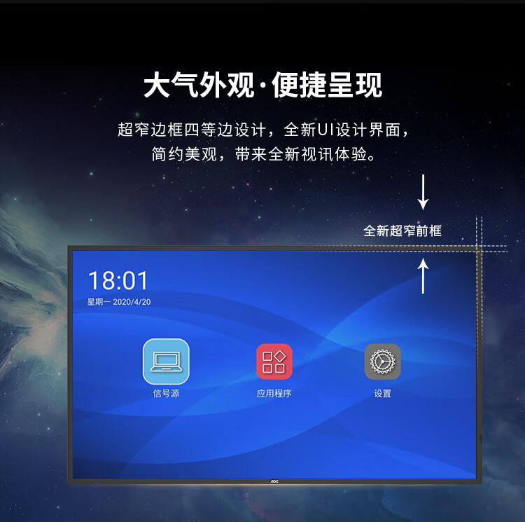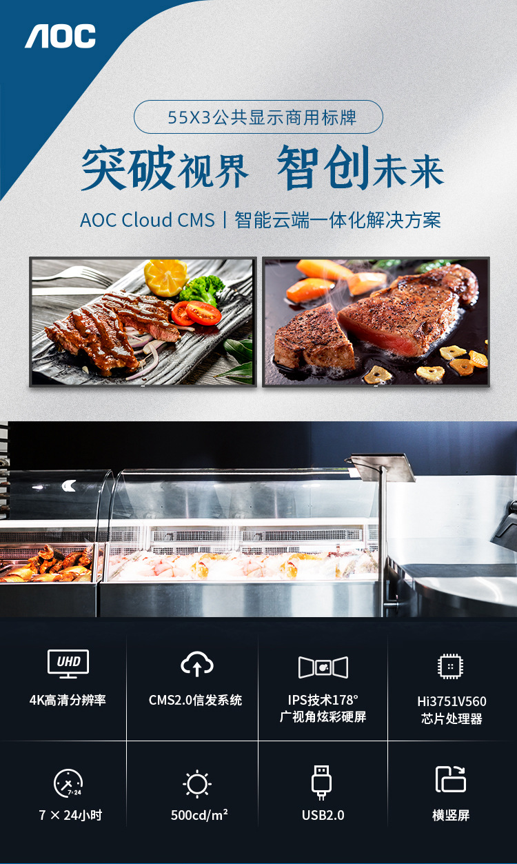 AOC 55 인치 광고 기계 벽 매달려 4K 지능형 수평 및 수직 화면 광고 화면 회의 대형 화면 기업 정보 출시스토어 가기
