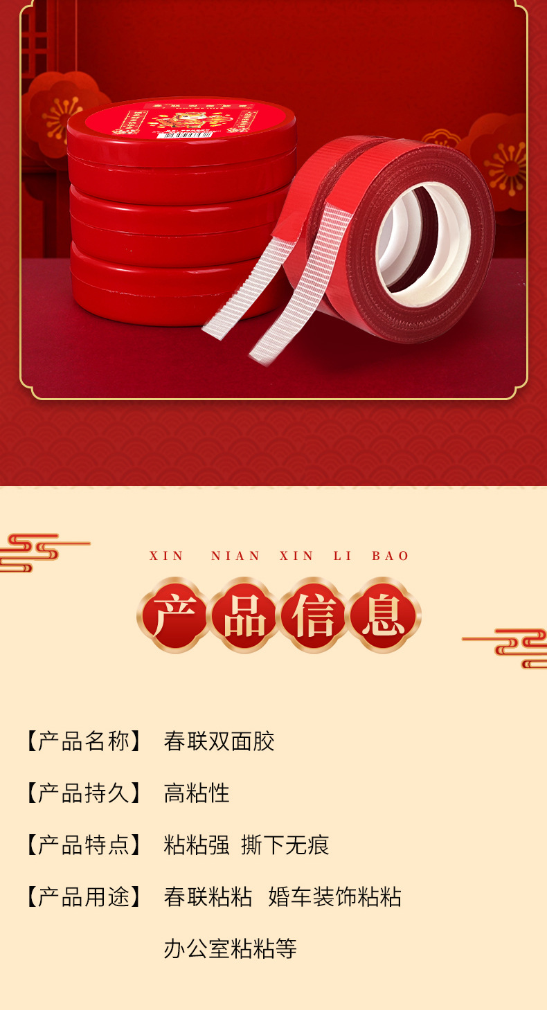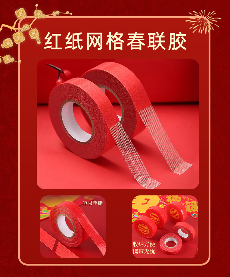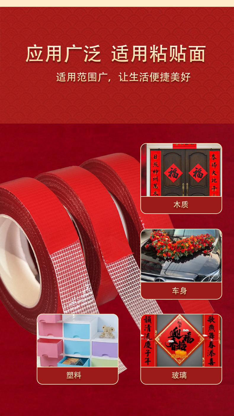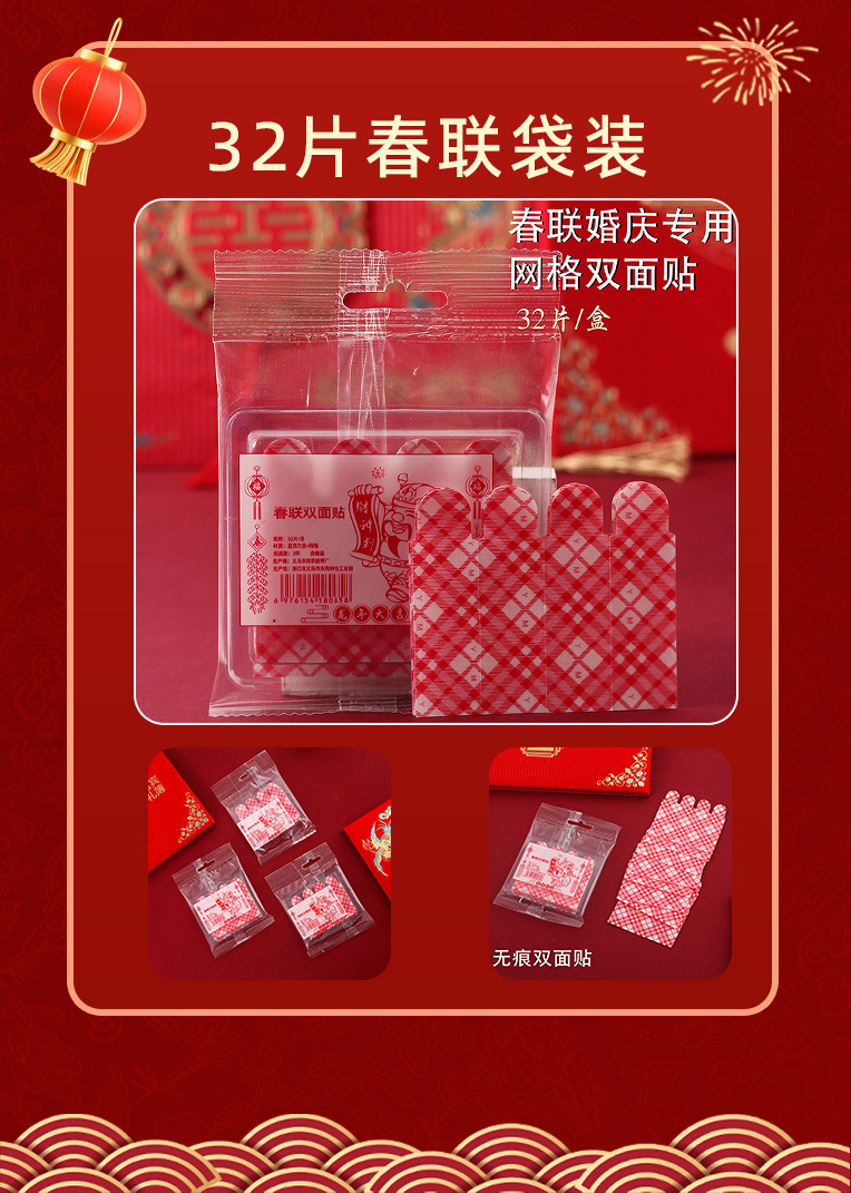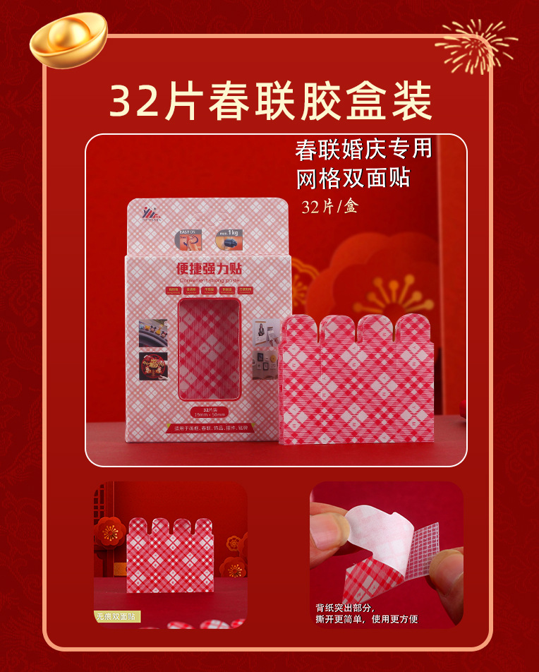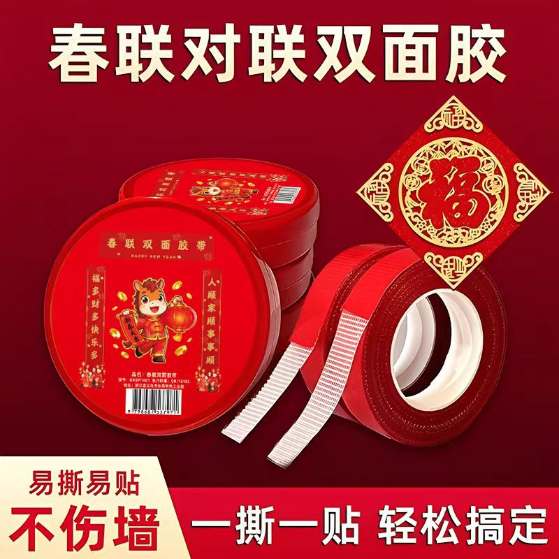 새로운 메쉬 커플 양면 접착 테이프 손으로 찢을 수있는 고접착 원활한 접착 테이프 웨딩 스티커 Fu 캐릭터 장식 봄 축제 커플 양면 접착스토어 가기