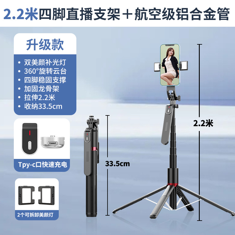 P185P180 새로운 미니 휴대 전화 라이브 네 다리 브래킷 초광각 회전 짐벌 바닥 블루투스 셀카 스틱