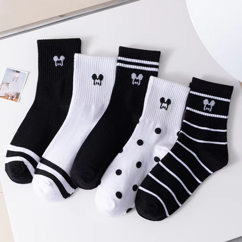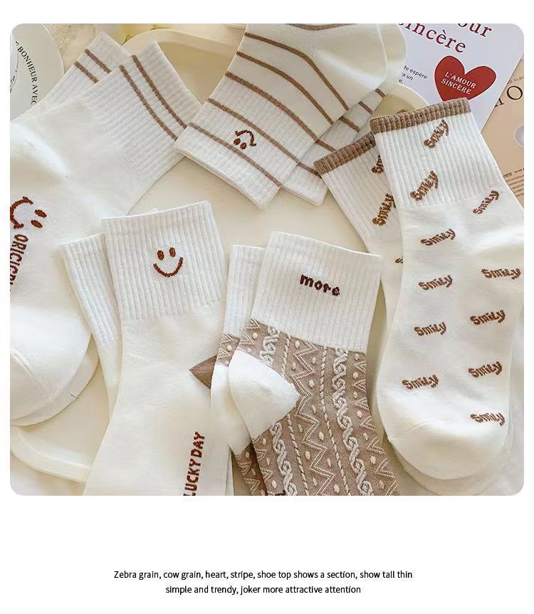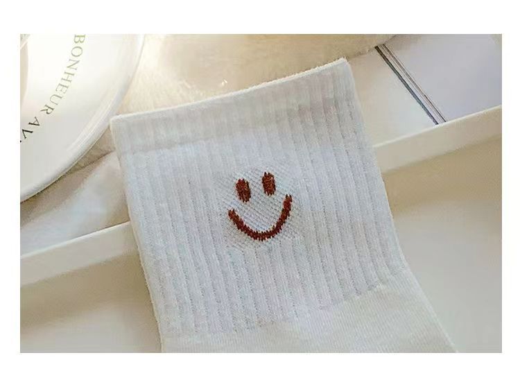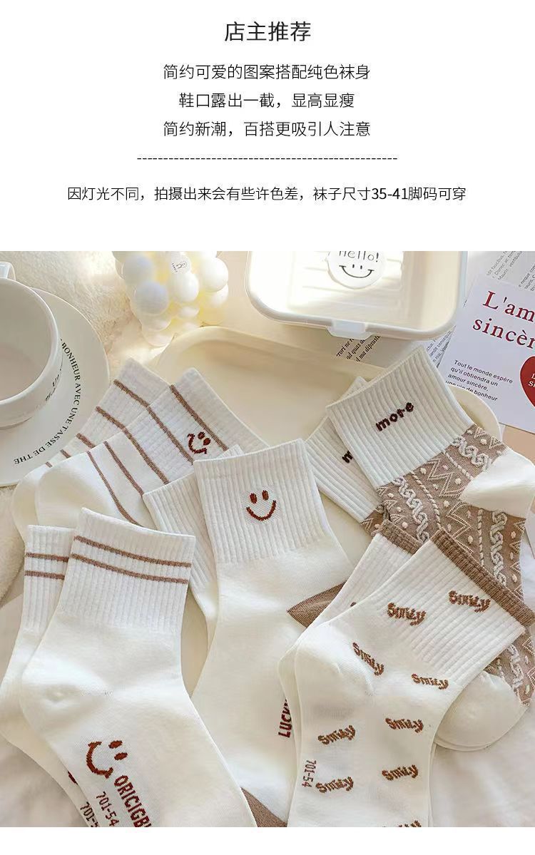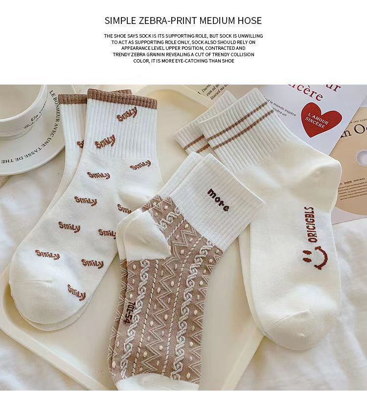 • W015 여성용 미드 튜브 문 양말 라이트 컬러