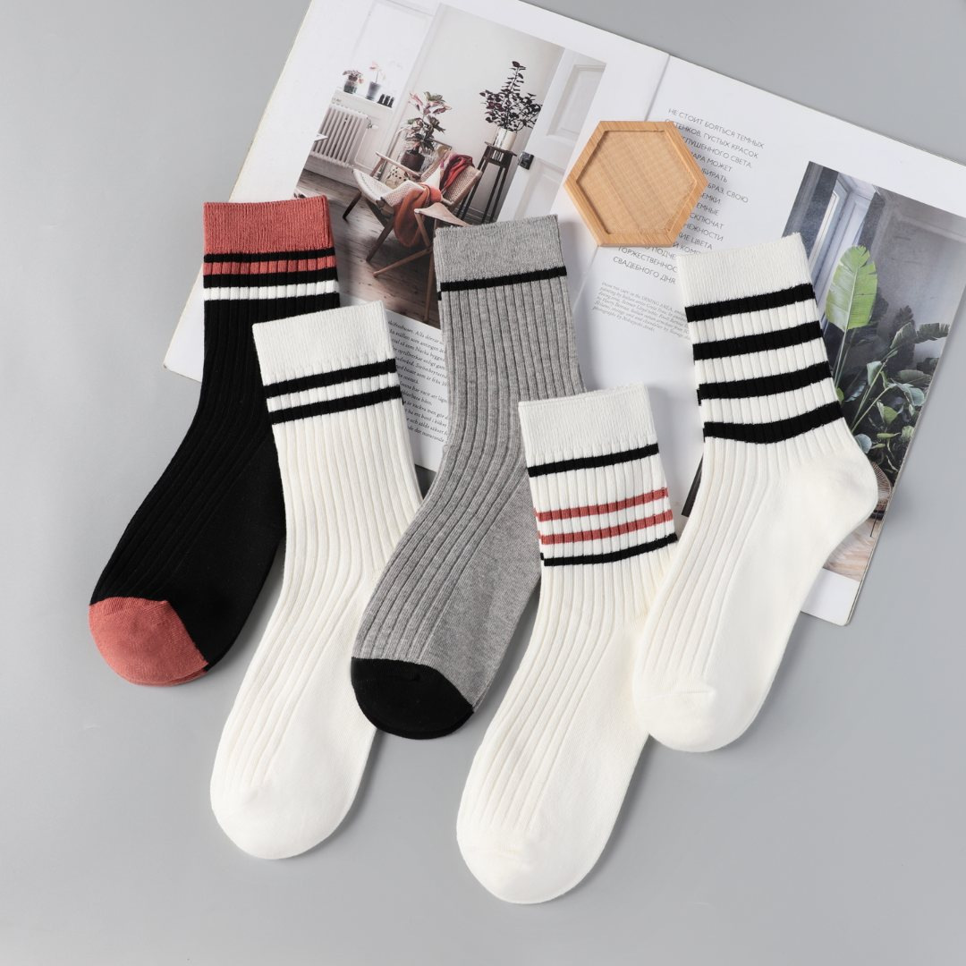 다양한 새로운 남성과 여성의 양말 일본 귀여운 단색 줄무늬 양말 가을과 겨울 Zhuji 양말 도매스토어 가기