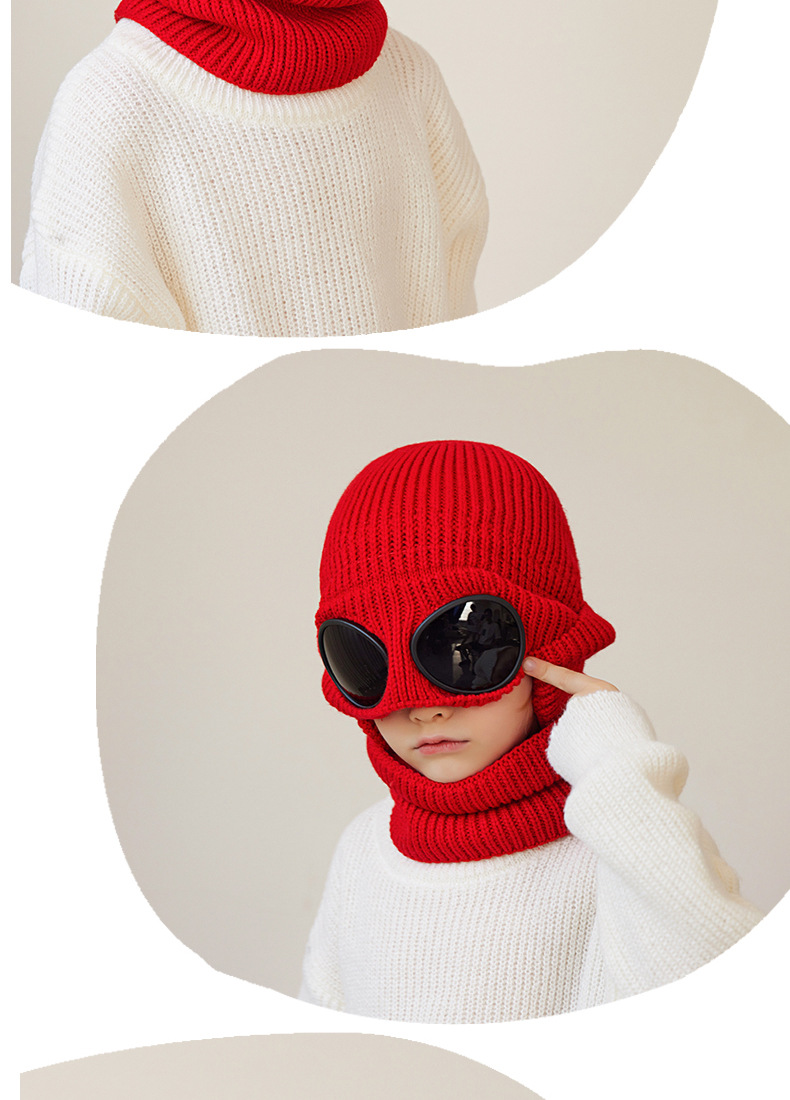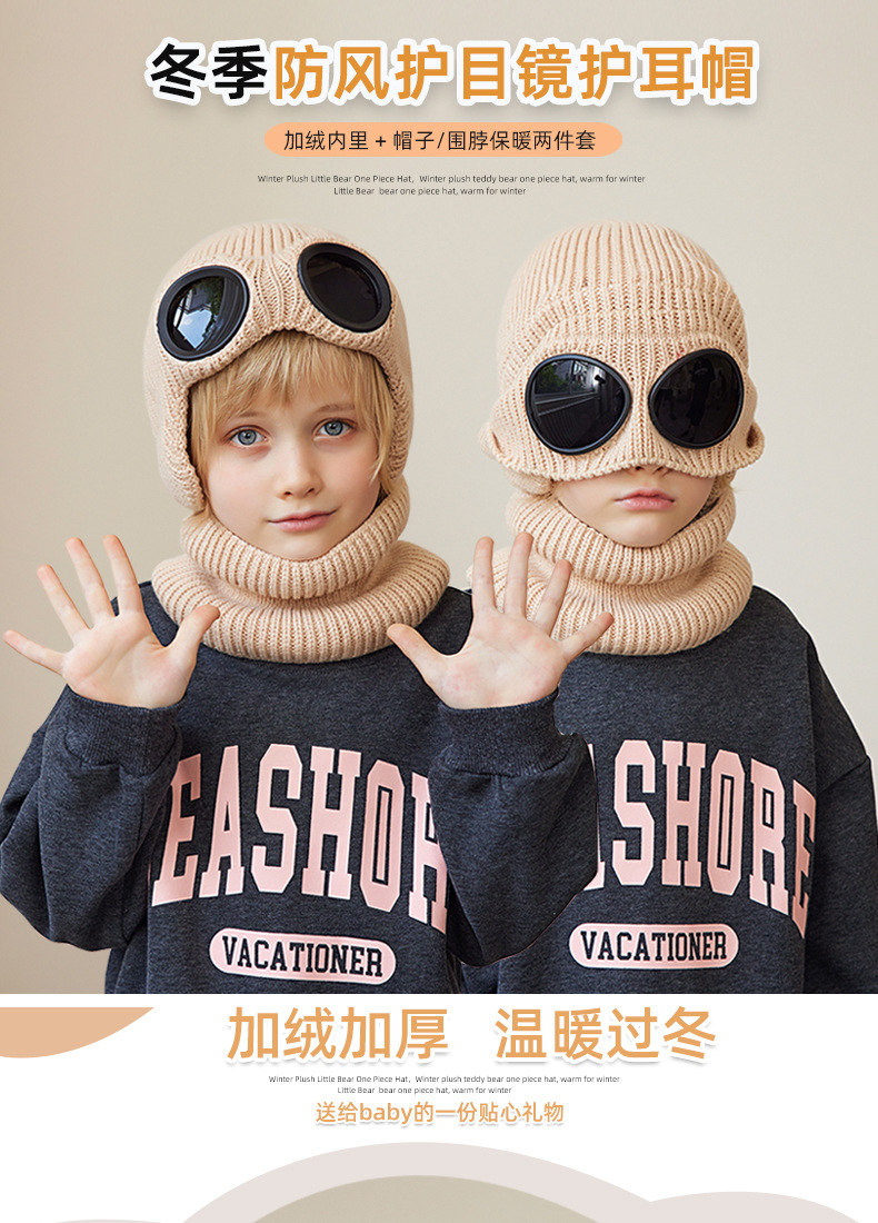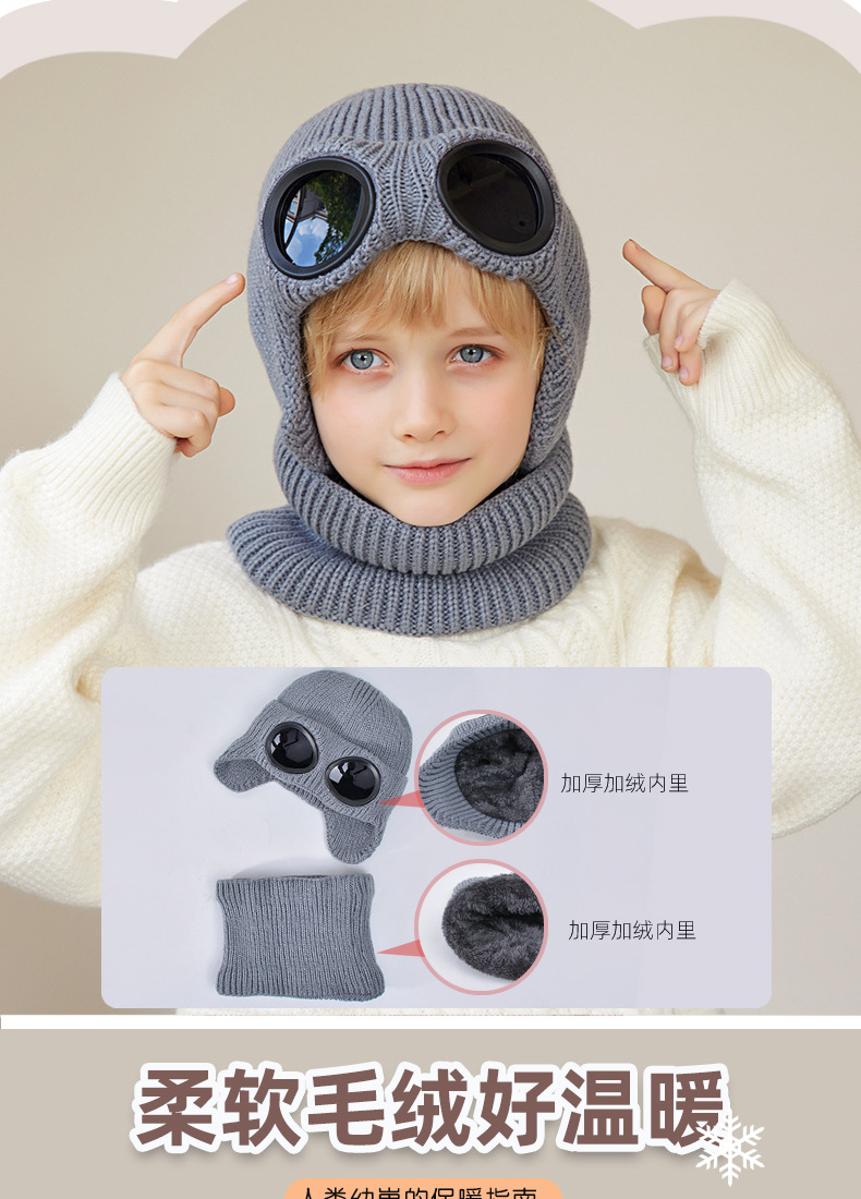 2163 국경 간 어린이 모자 스카프 투피스 겨울 기모 귀 보호 울 모자 안경 니트 풀오버 모자스토어 가기