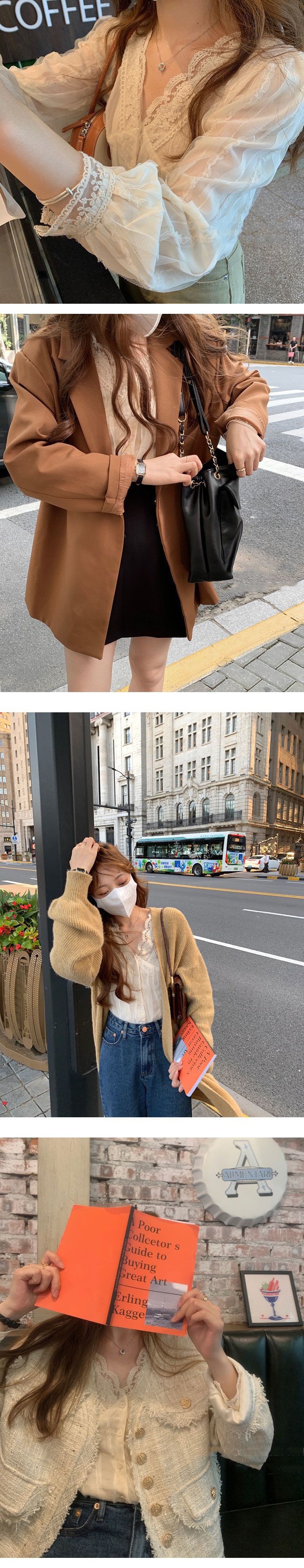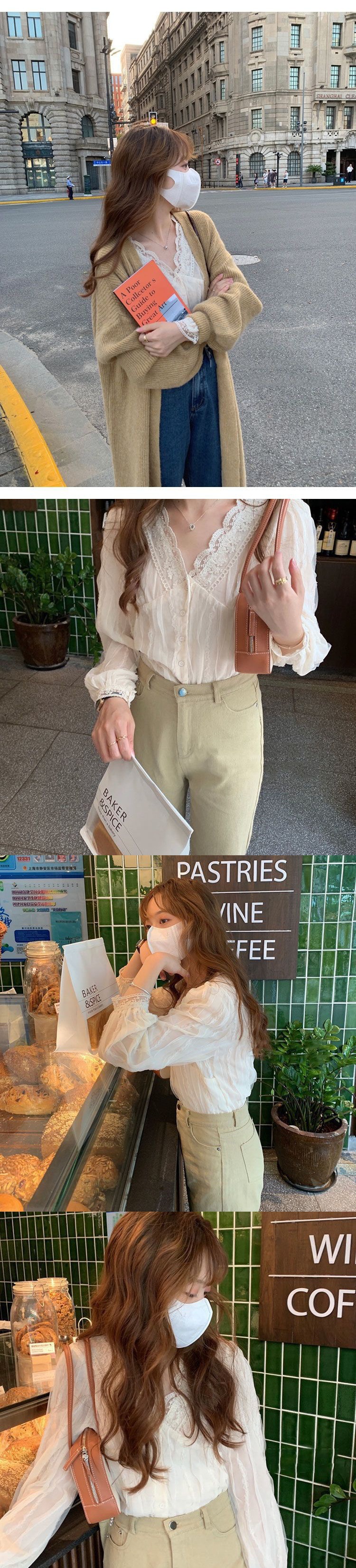 우아한 V-넥 레이스 셔츠 여성용 2022 봄 뉴 젠틀 올매치 쉬폰 스위트 시크 셔츠스토어 가기