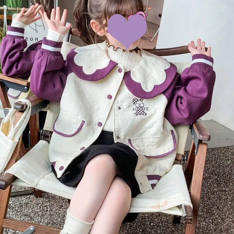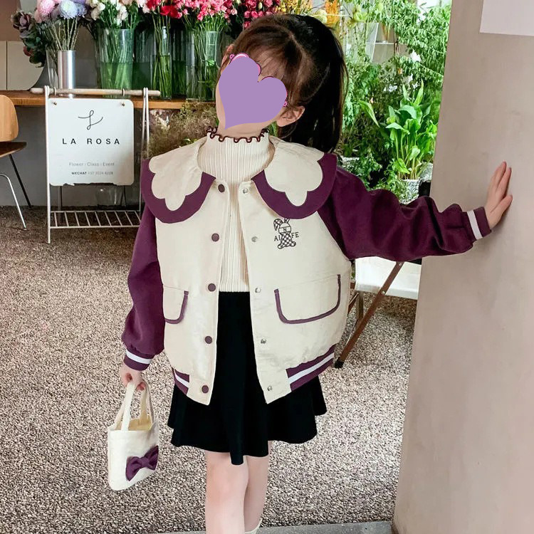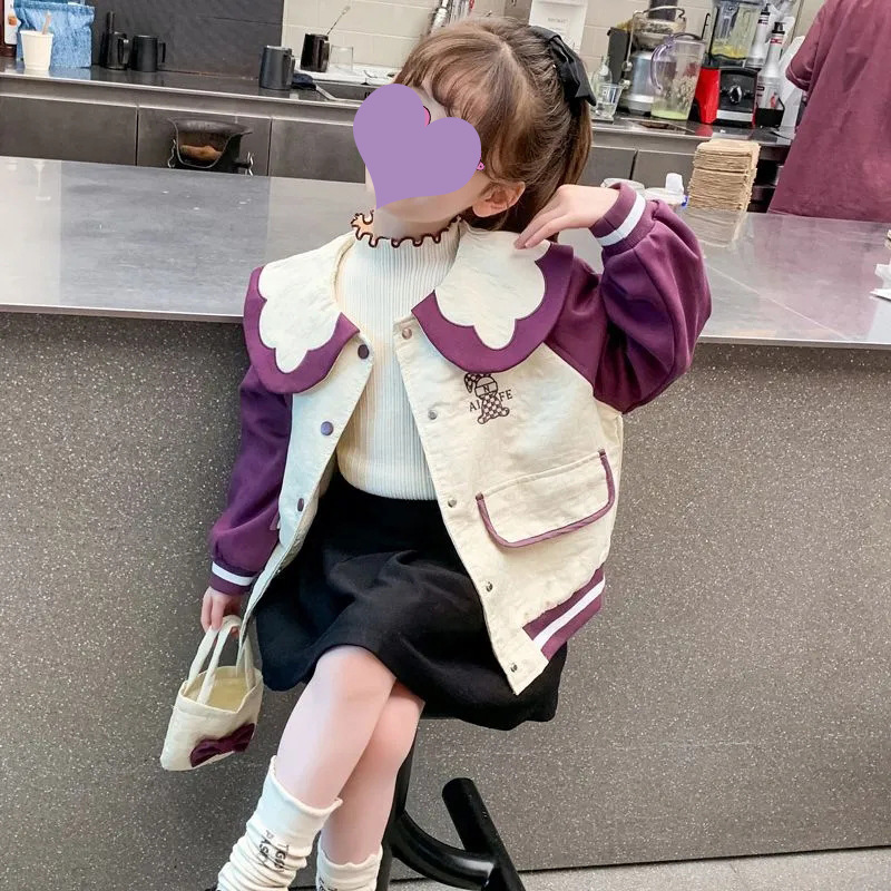 여자 코트 봄 2023 새로운 스타일 어린이 캐주얼 한국 스타일 봄 야구복 인형 칼라 가디건 탑