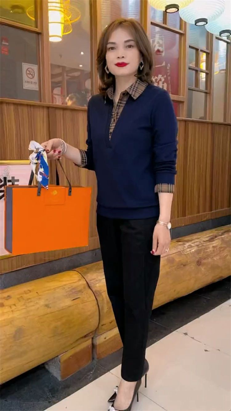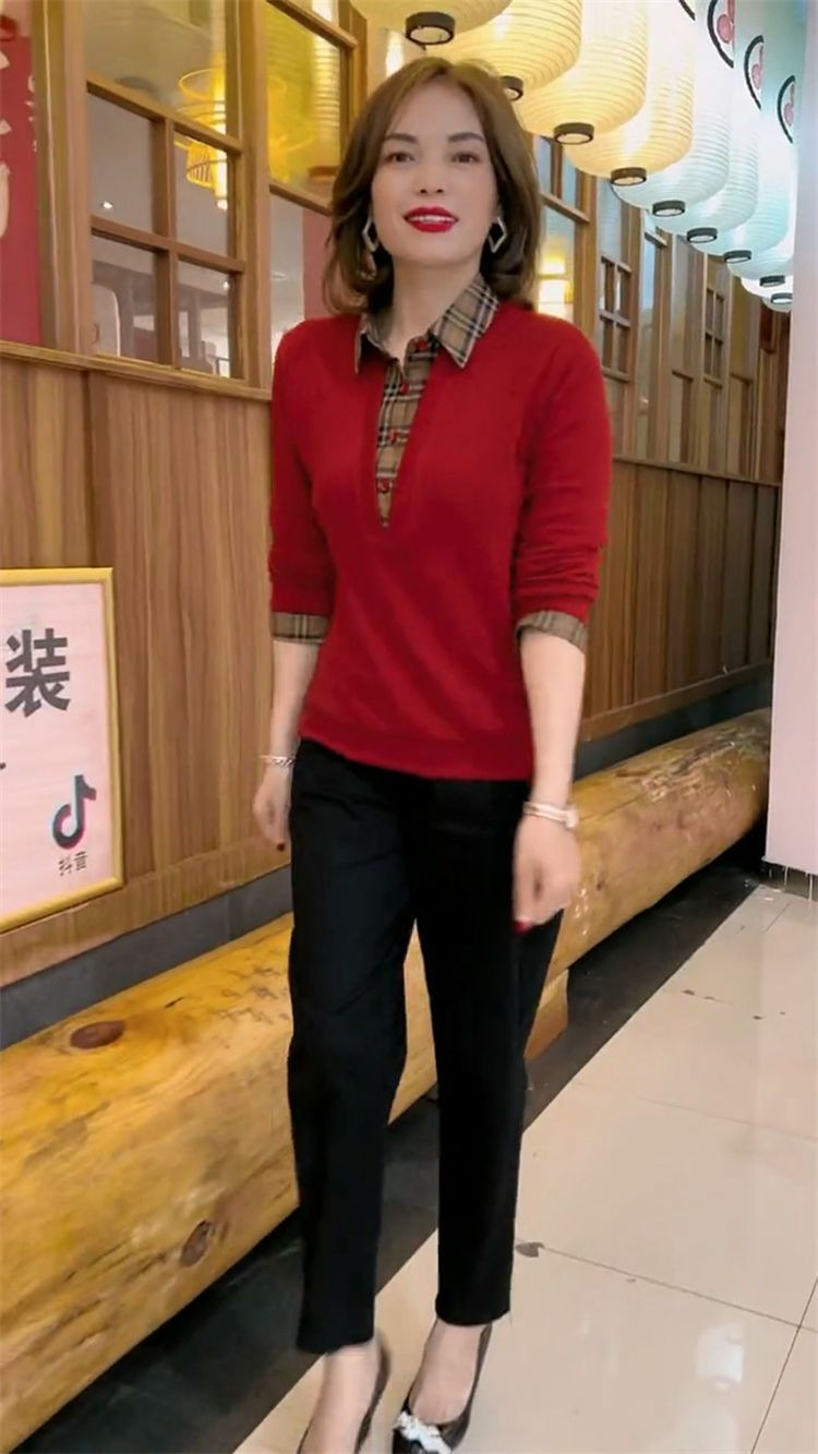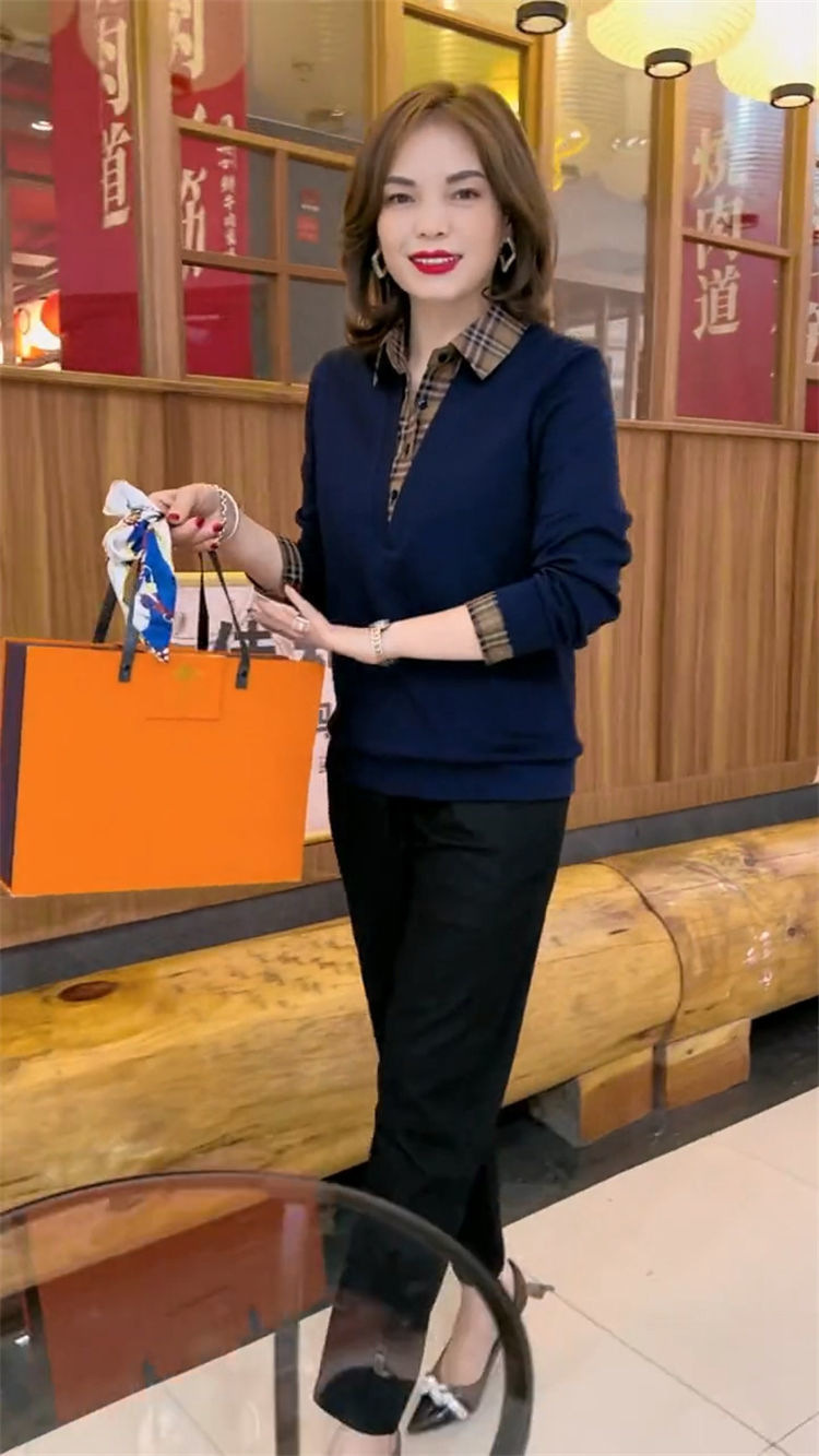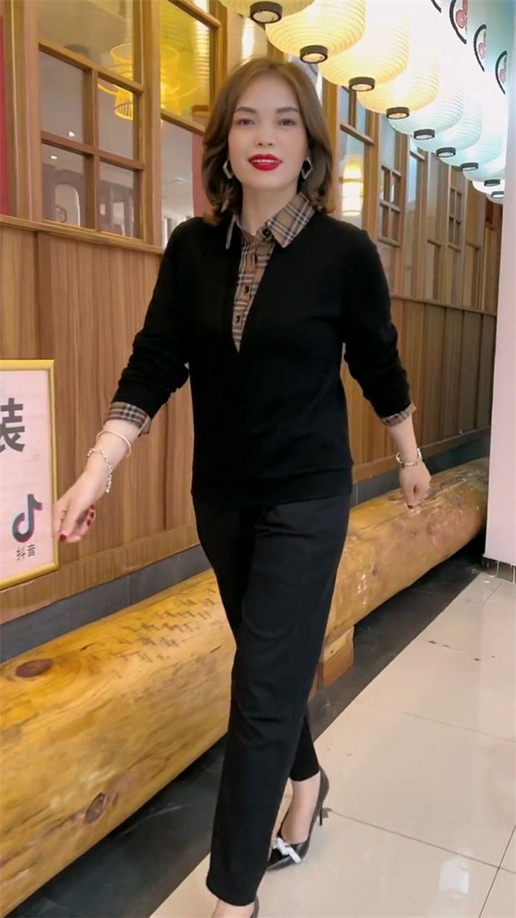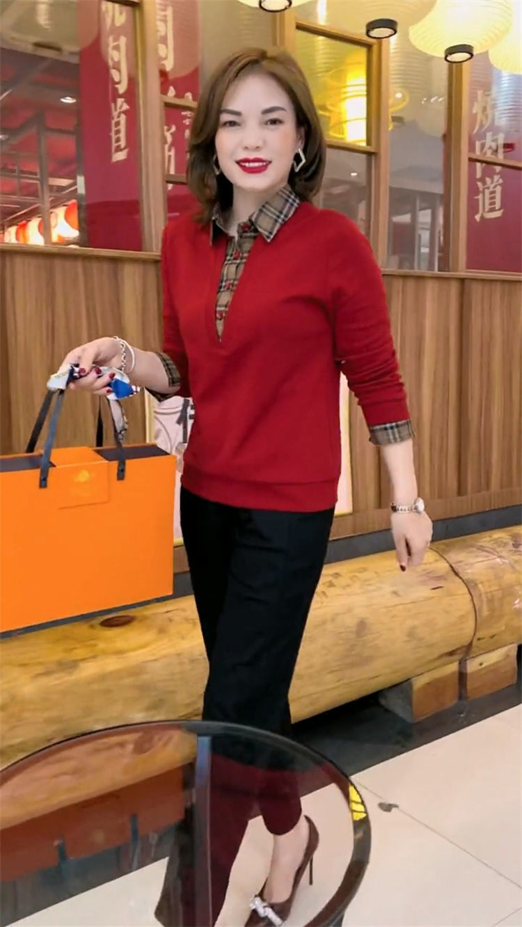 플러스 사이즈 200 진 기모 두꺼운 가짜 투피스 가을과 겨울 패션 셔츠 스티치 스웨터 여성의 느슨한 배꼽 덮개 어머니스토어 가기