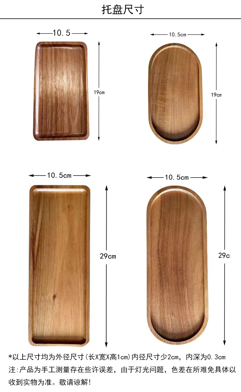 나무 트레이 아카시아 타원형 티 트레이 말린 과일 스낵 접시 과일 스테이크 접시 디너 플레이트 나무 접시