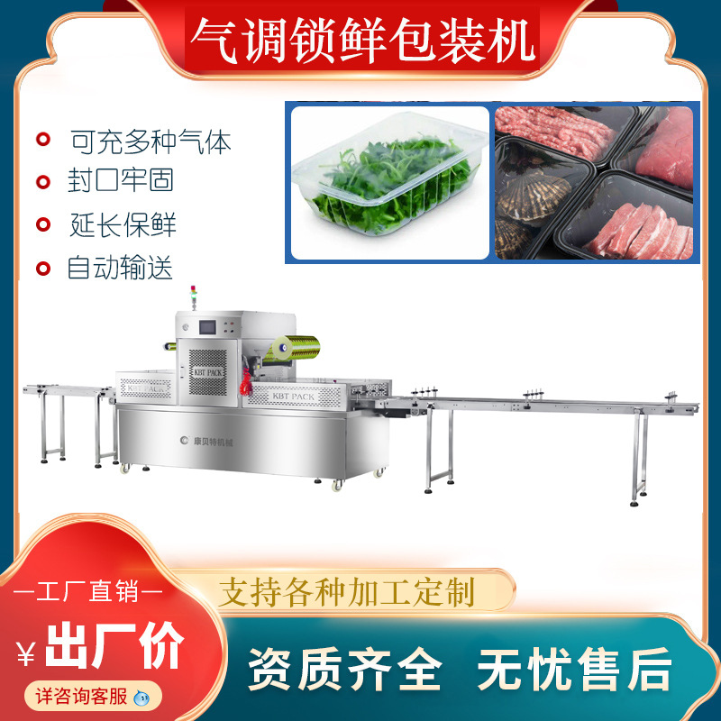 豆皮盒装连续式气调包装机 黑椒猪排盒装气调保鲜封口机