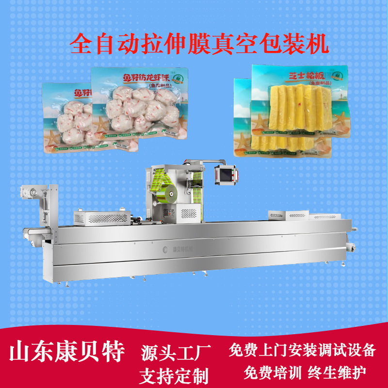 全自动食品真空包装流水线 虾丸真空包装机 虾球拉伸膜真空包装机