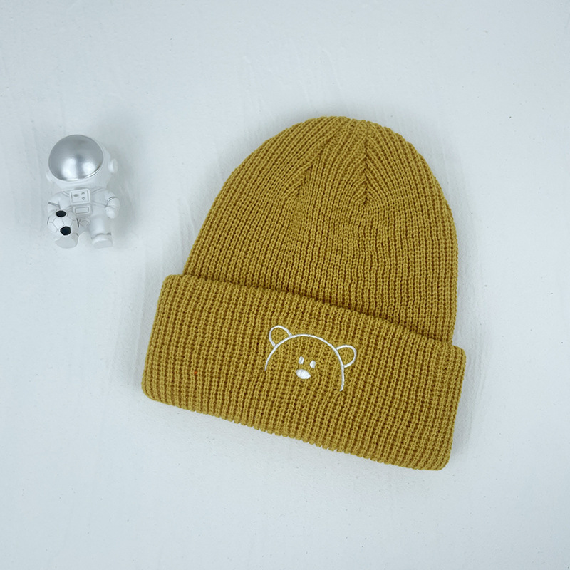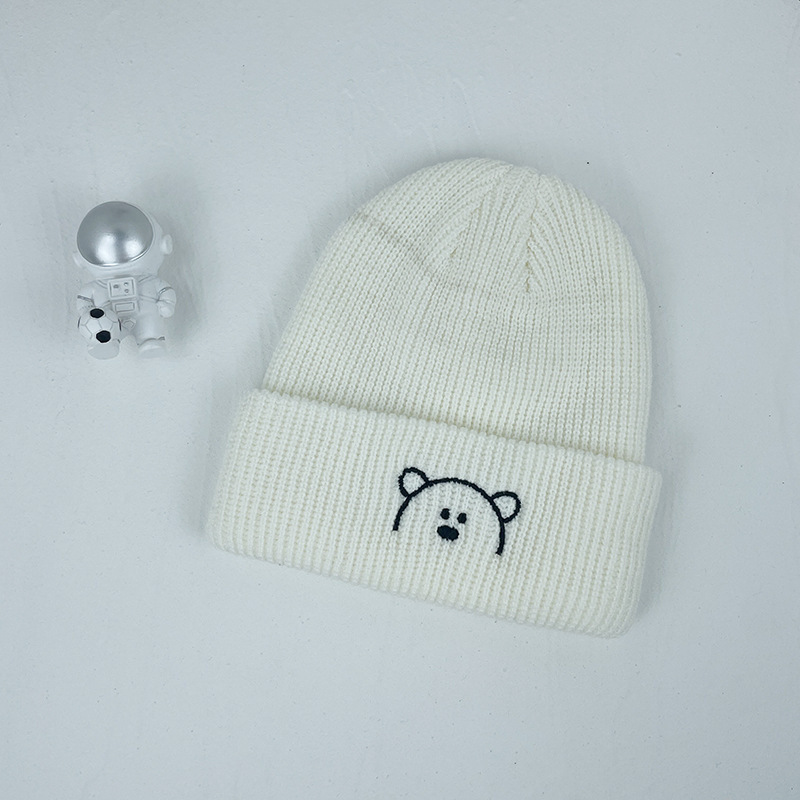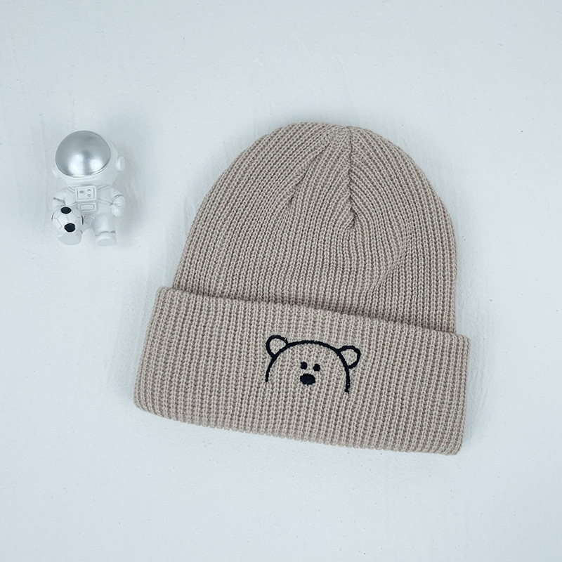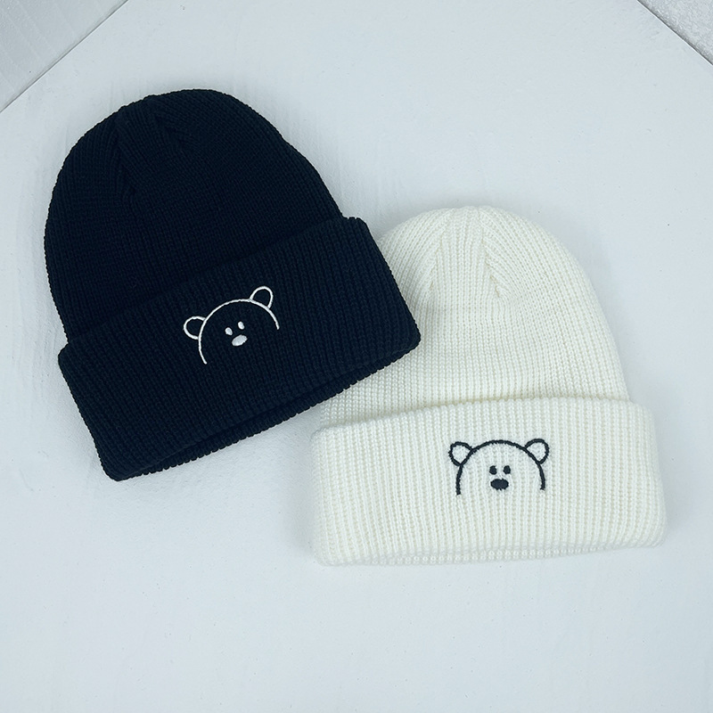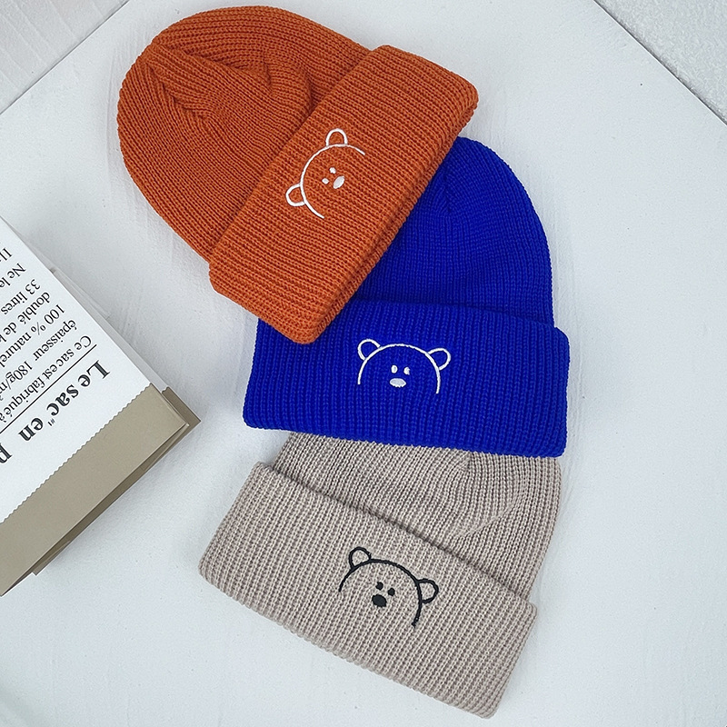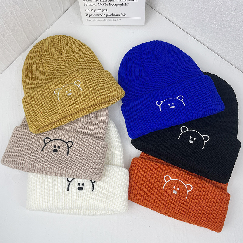 어린이 니트 모자 소녀와 소년 가을과 겨울 방한 따뜻한 풀오버 모자 수 놓은 귀여운 곰 곱슬 아기 양모
