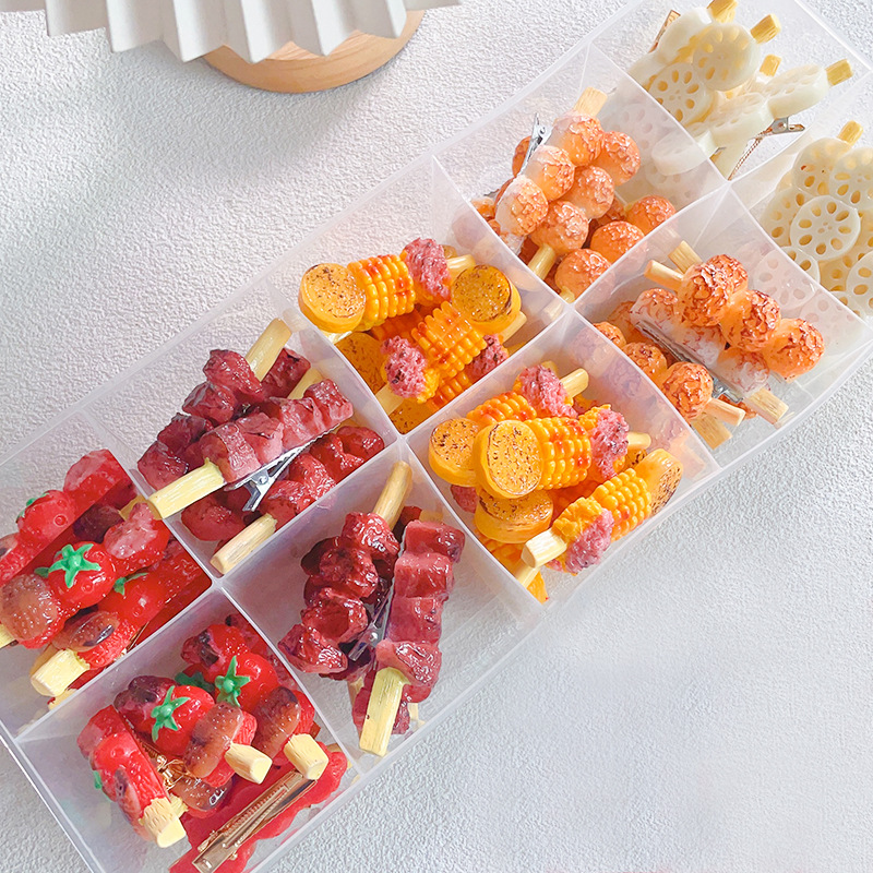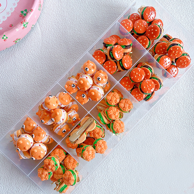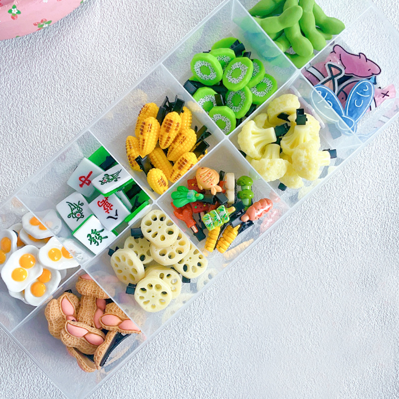 박스 시뮬레이션 음식 놀이 머리핀 햄버거 과일 머리핀 학생 만화 머리 장식 마구간 공급 도매 이우 여름