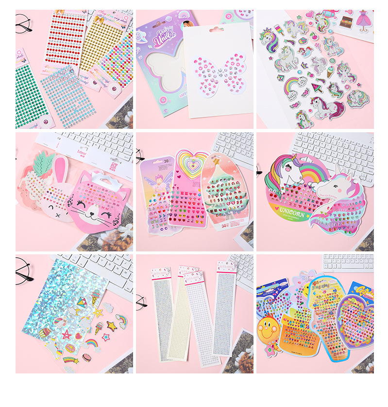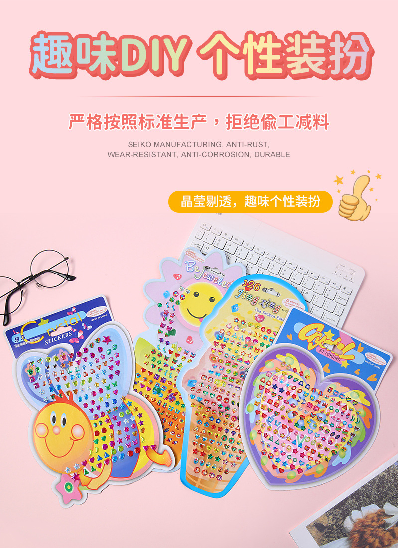 귀여운 만화 버블 스티커 어린이 장식 입체 크리스탈 스티커 어린이 스티커 드롭 접착제 버블 스티커