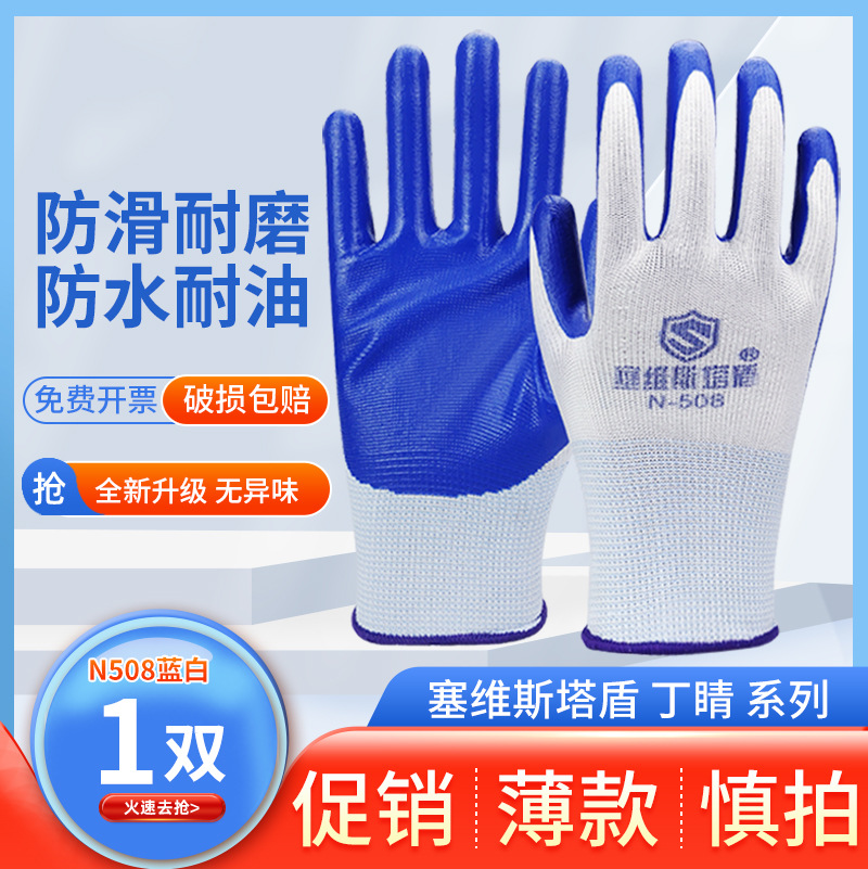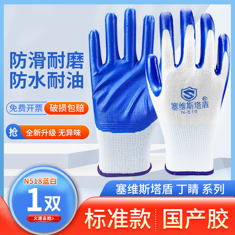 노동 보호 장갑 Ding Qing 고무 라텍스 장갑 현장 시공 내마모성 미끄럼 방지 고무 디핑 고무 작업 니트릴 장갑스토어 가기