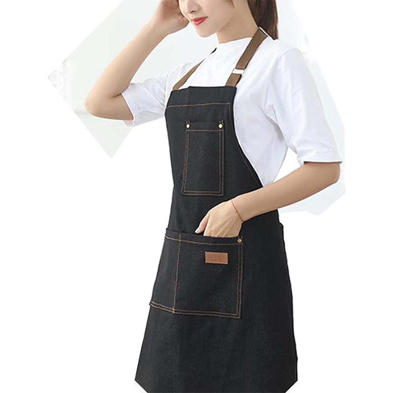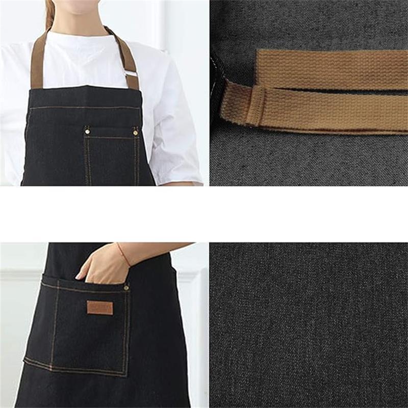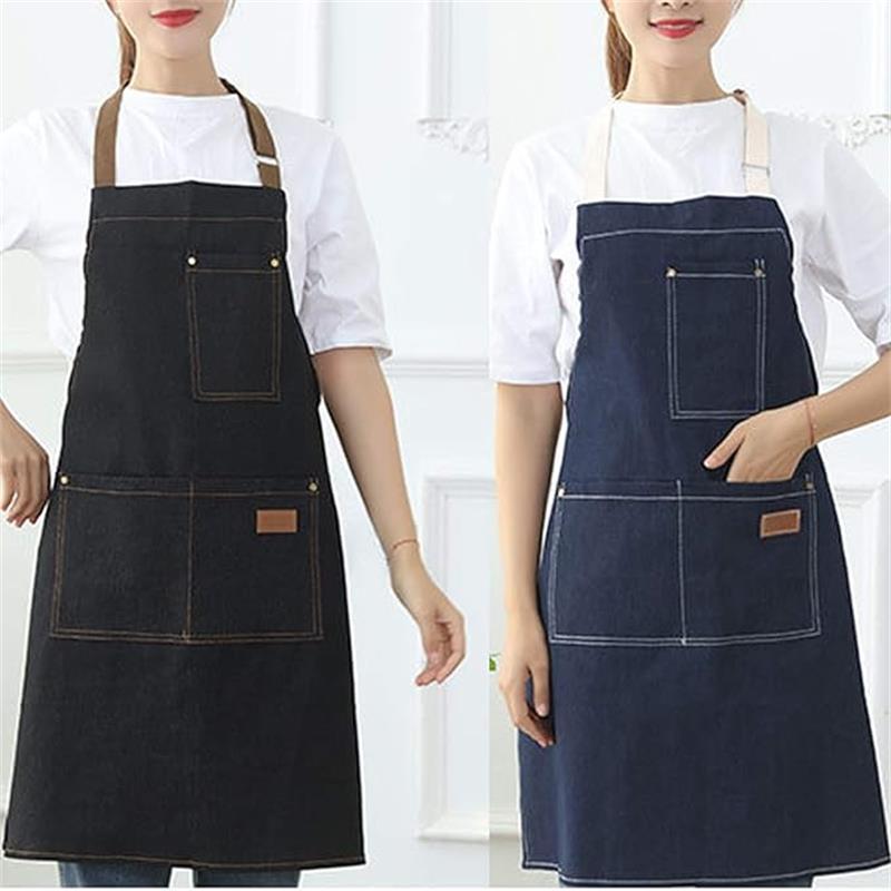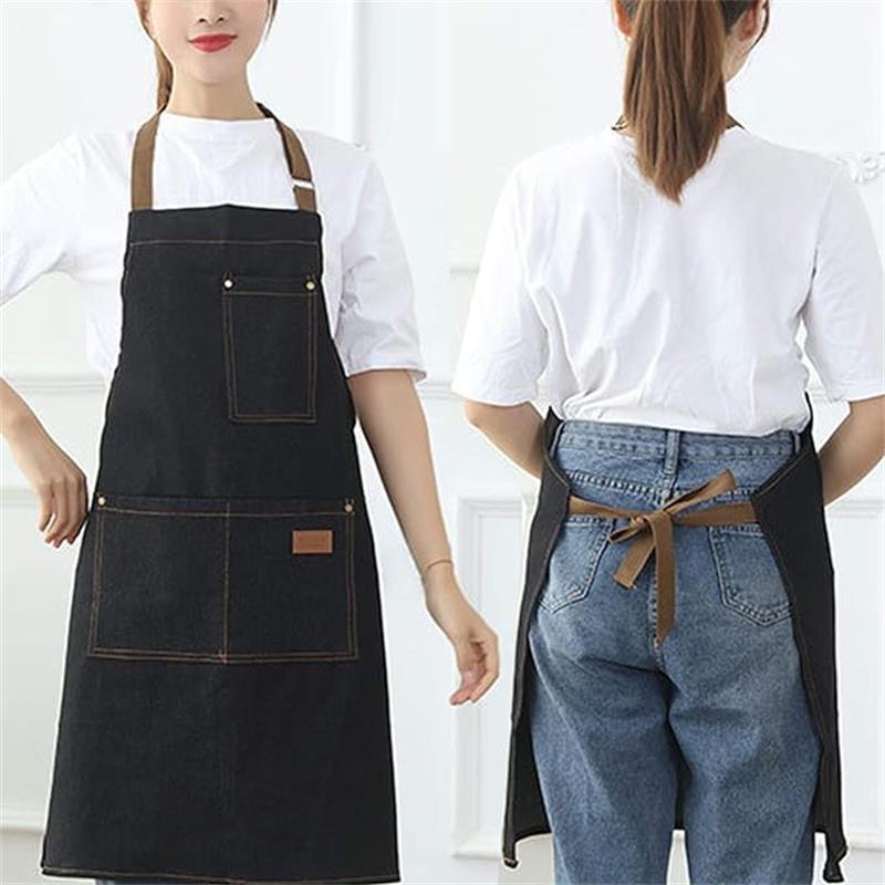 아마존 목 대비 데님 앞치마 레스토랑 우유 차 가게 카페 베이킹 남자와 여자의 바지 인쇄 로고스토어 가기