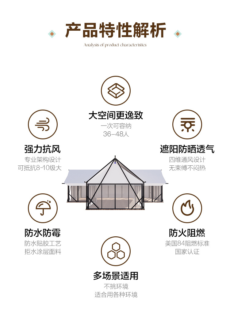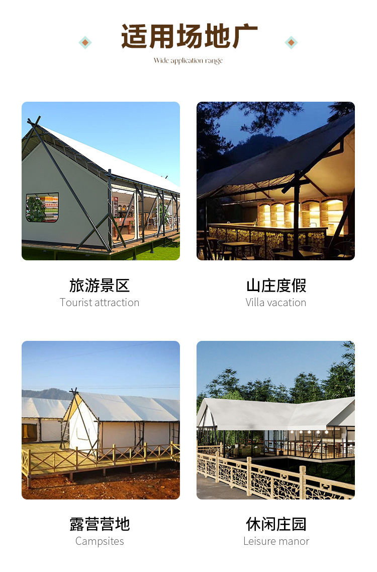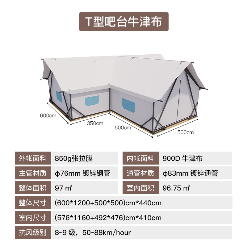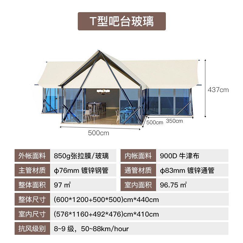 캠프 텐트 야외 대형 호텔 스타일 레저 텐트 T 자형 바 레스토랑 여행 리조트 B&B 하우스 야생 럭셔리