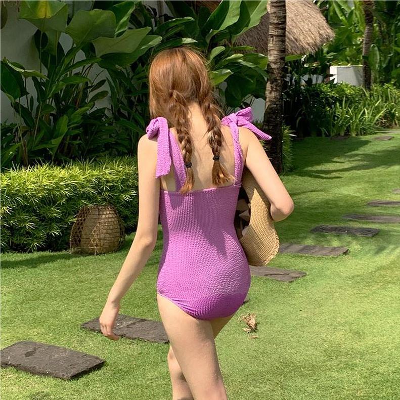 소스 공장 스타일 캔디 컬러 단색 간단한 복고풍 활 배꼽 취재 슬림 보수적 원피스 수영복