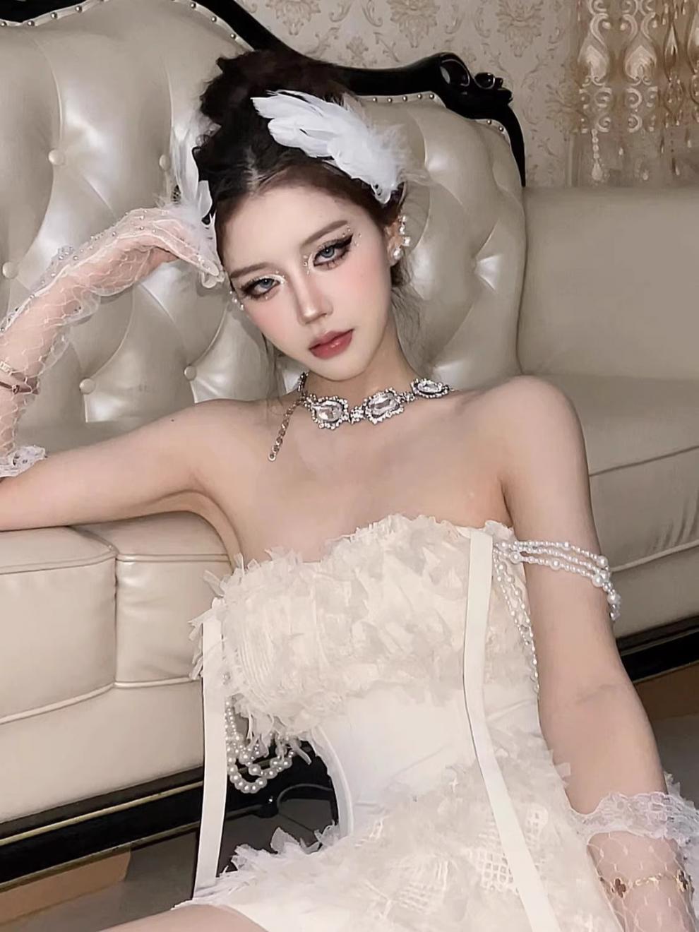 화이트 페어리 깃털 머리핀 여성용 프랑스 발레 무대 공연 헤어 액세서리 화이트 스완 사이드 클립 탑 클립 헤드스토어 가기