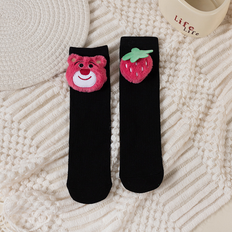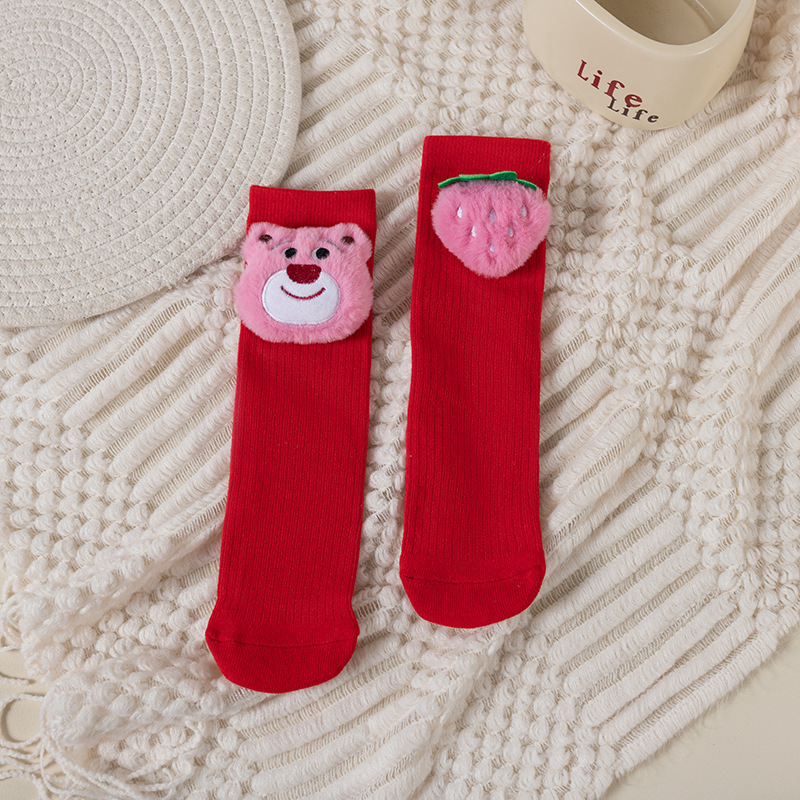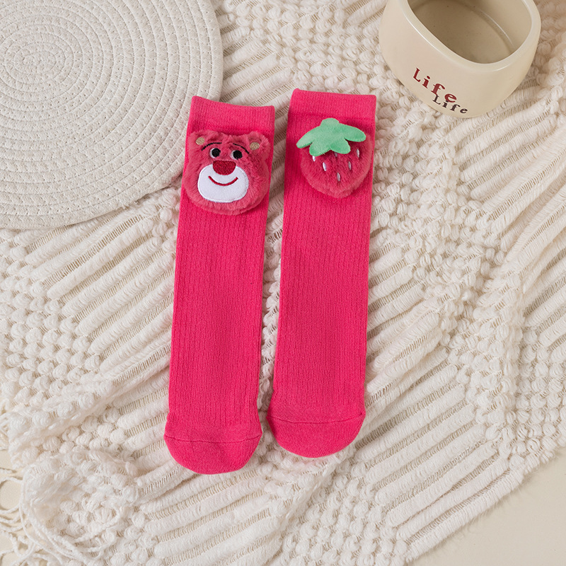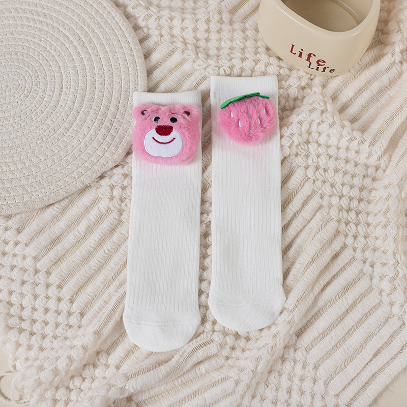 여아 양말 만화 딸기 곰 어린이 쌓기 양말 귀여운 아기 긴 배럴 돌 중소 어린이 높은면 양말