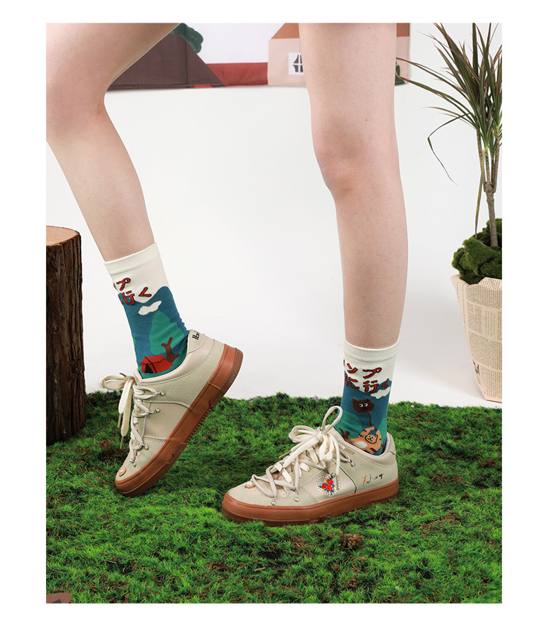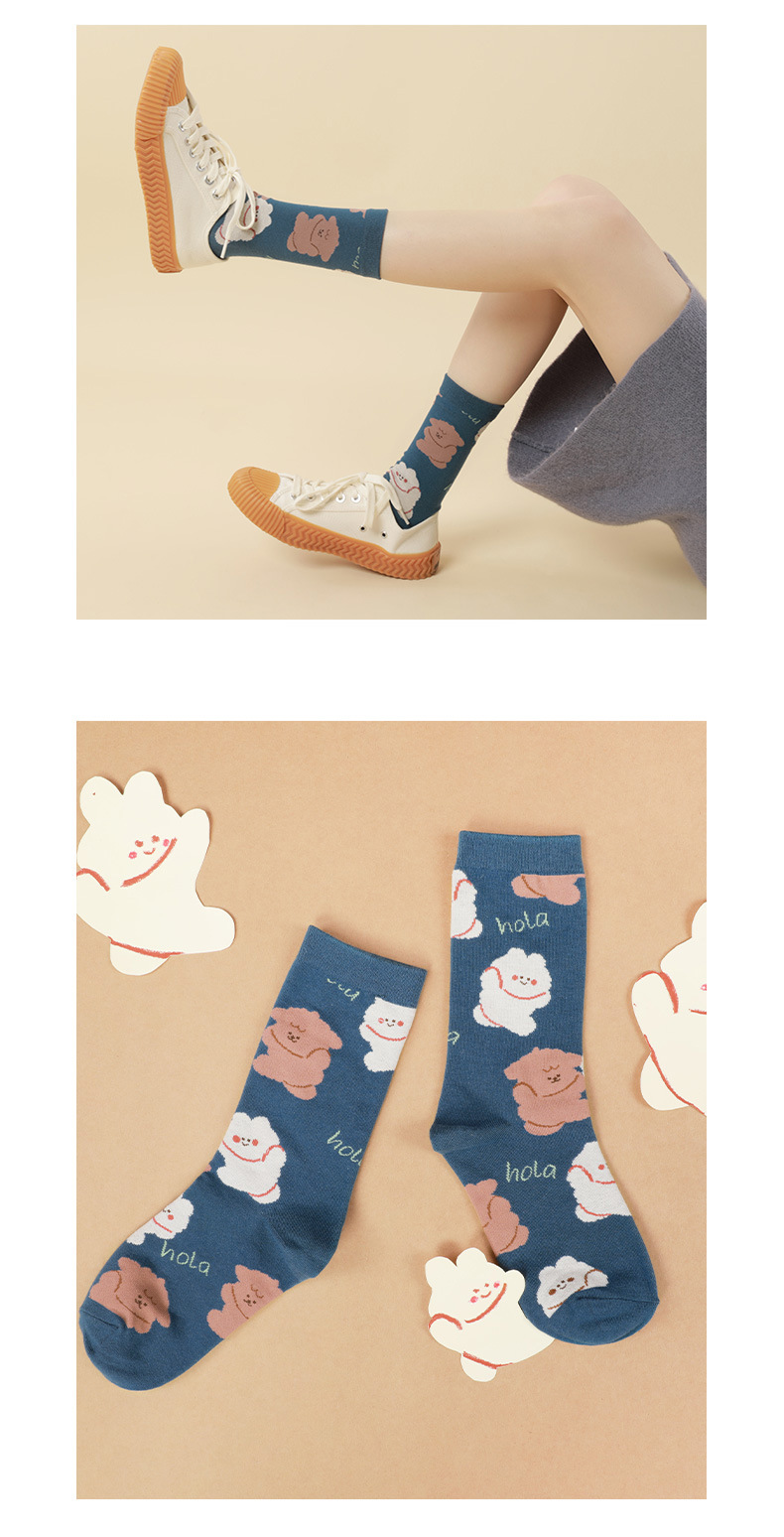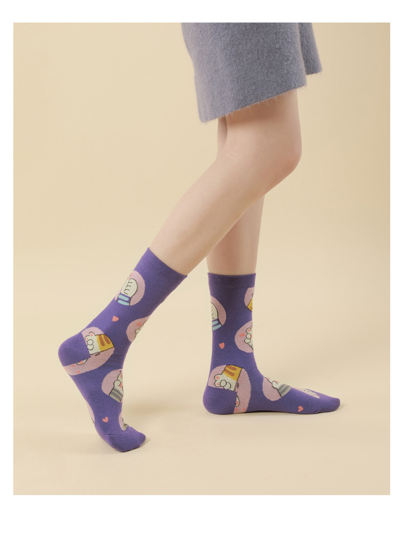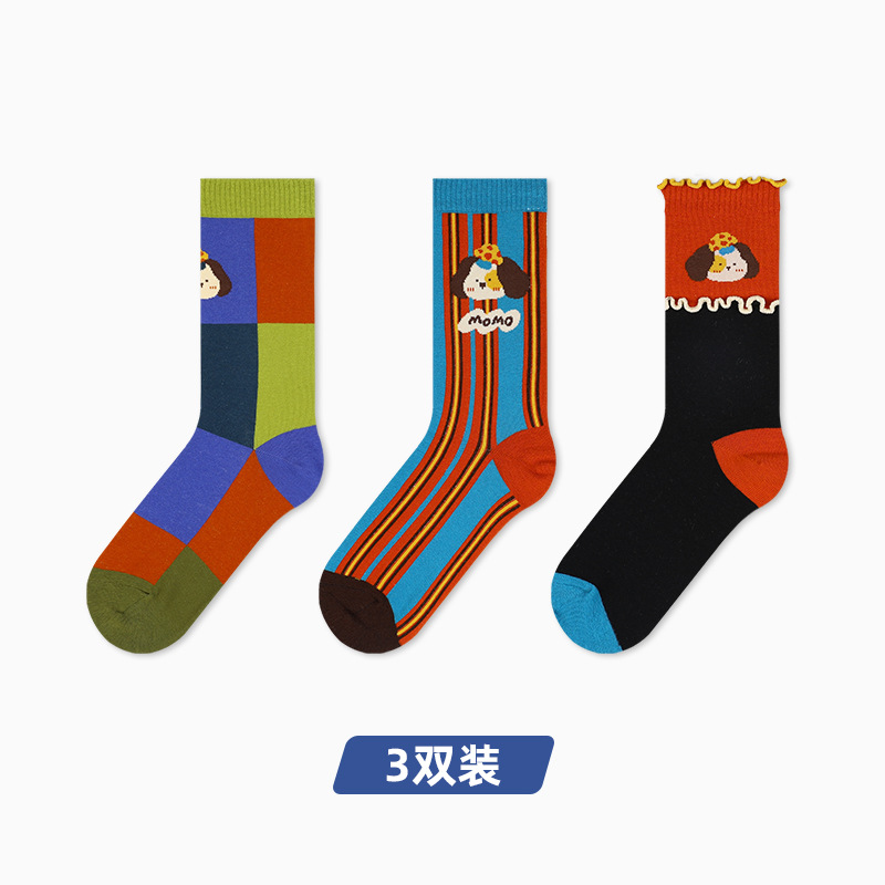 DAMAHOOV 원래 성격 만화 일러스트 튜브 양말 강아지 시리즈 귀여운 재미있는 커플 면 양말스토어 가기