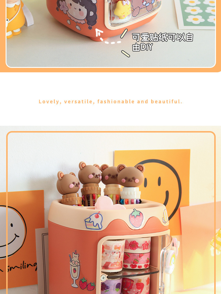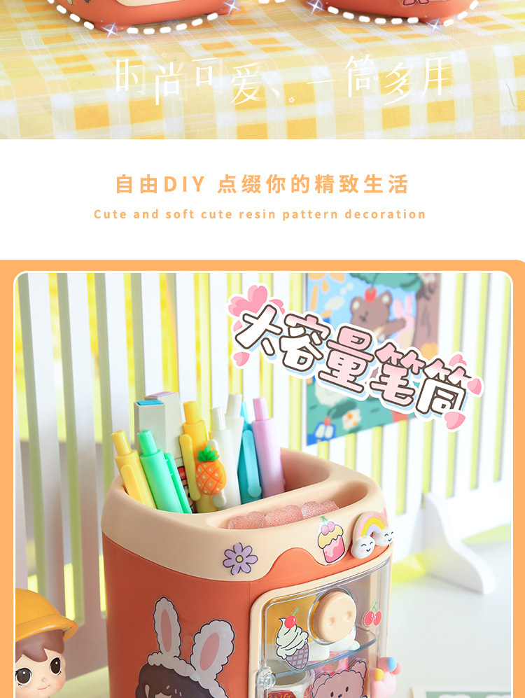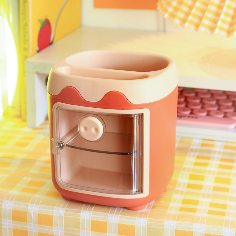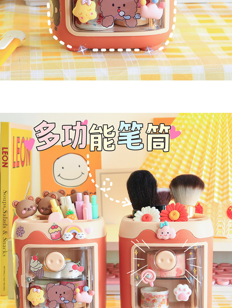 만화 멀티 그리드 플라스틱 펜 홀더 학생 데스크탑 귀여운 소녀 심장 그리드 도매 창조적 인 다기능 저장 상자