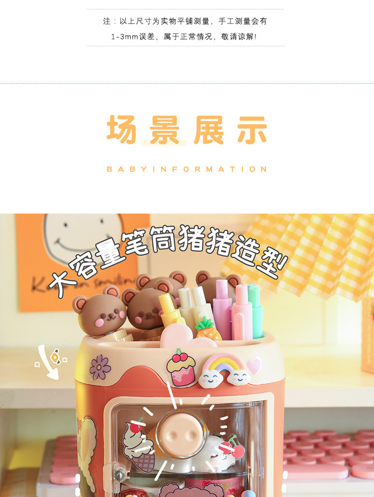 • 핑크 돼지 펜 용기 + 스티커 + 패치 6