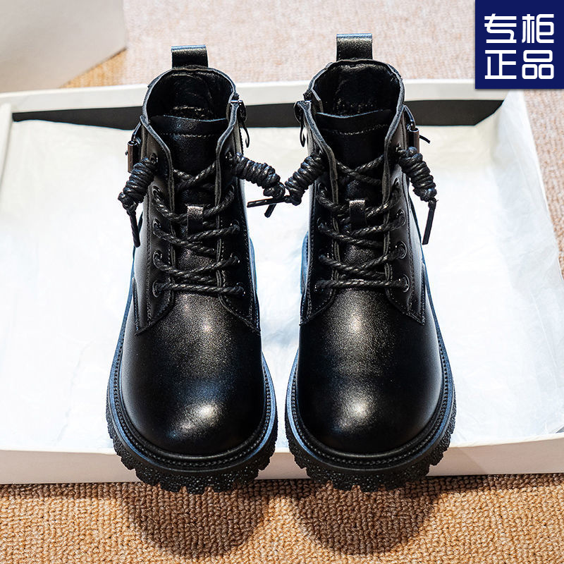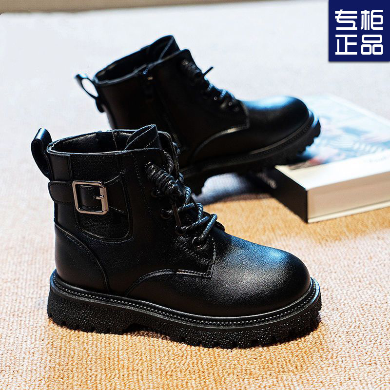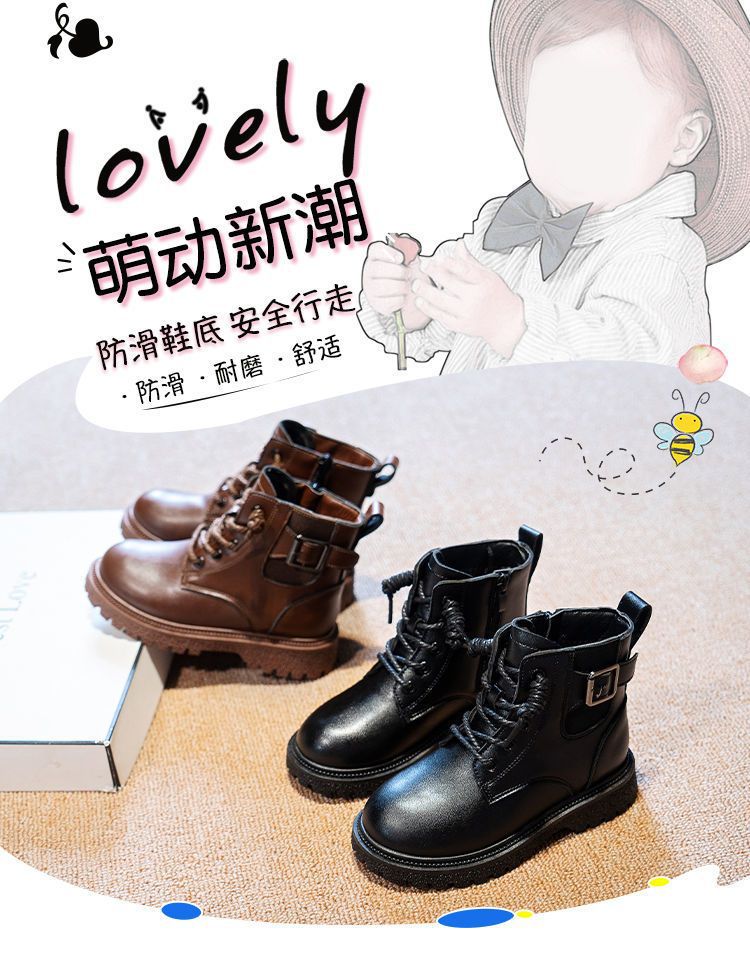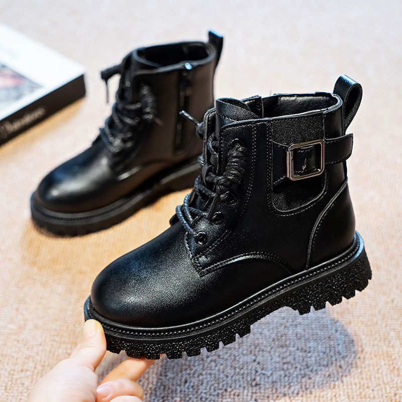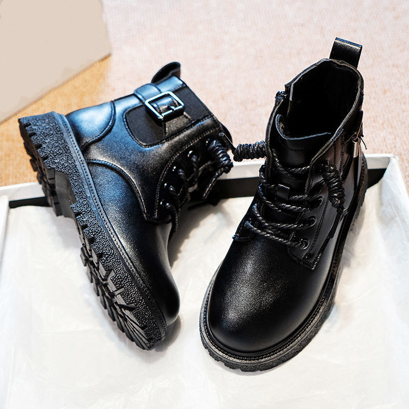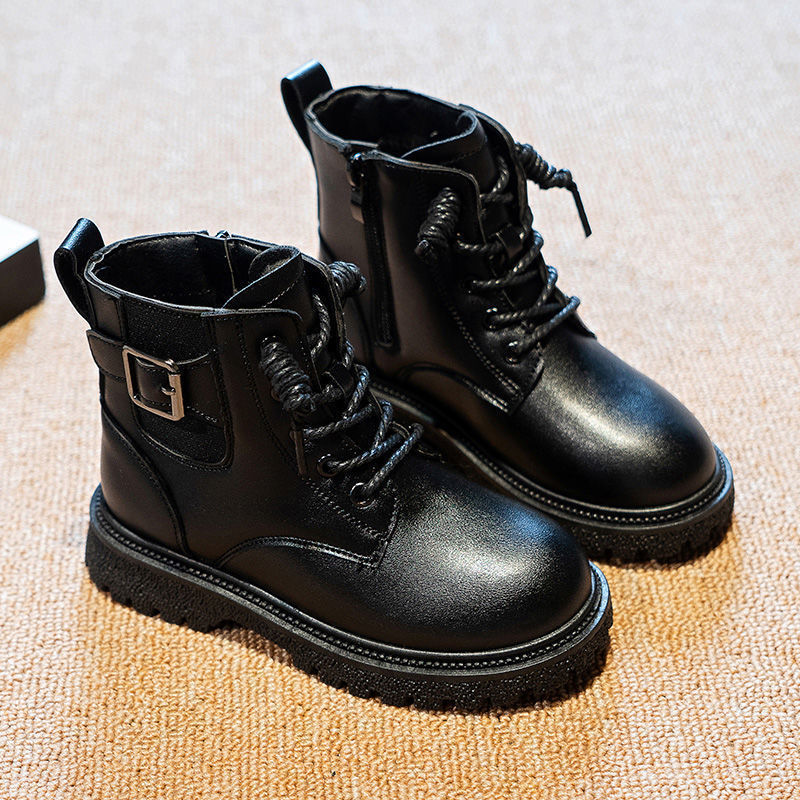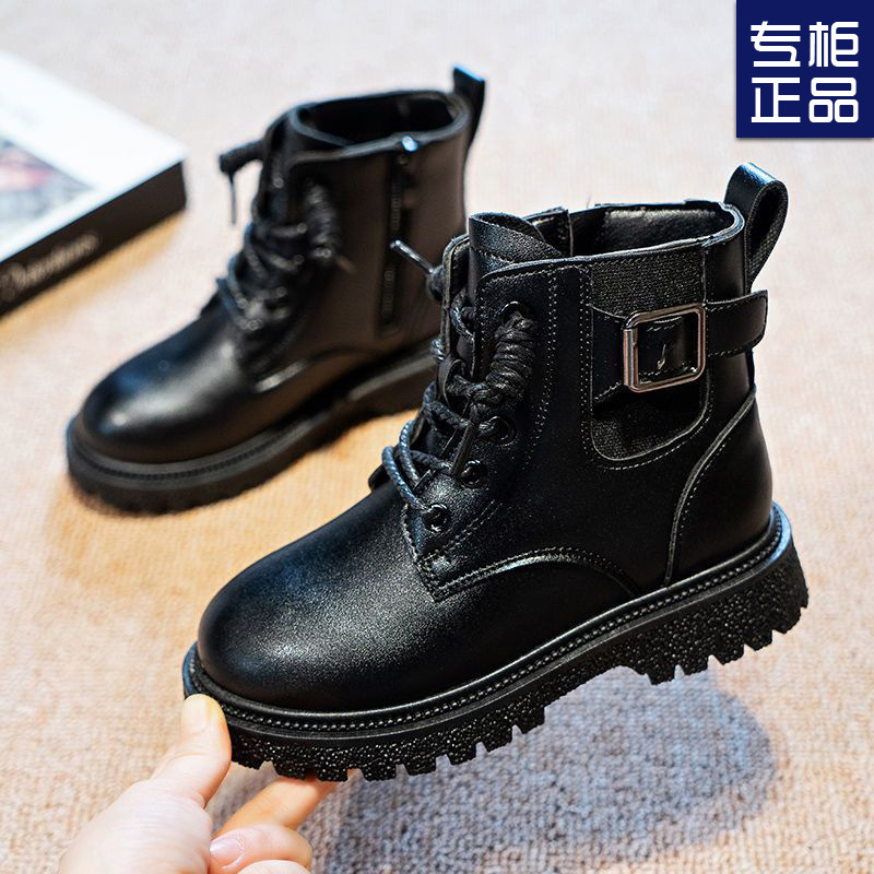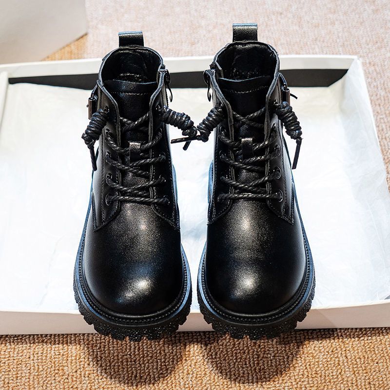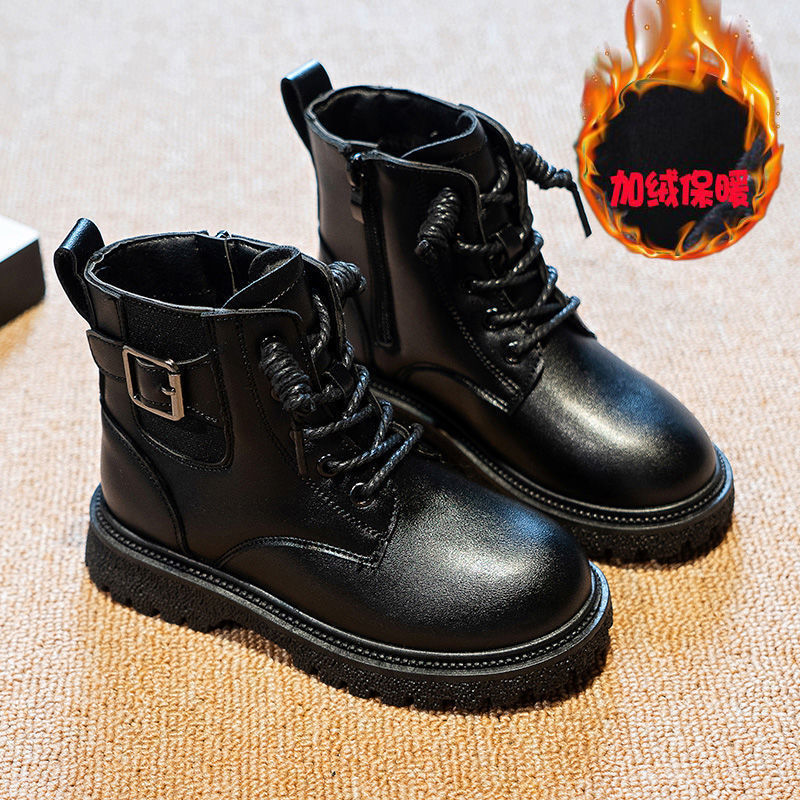 어린이 마틴 부츠 가을과 겨울 2023 블랙 기모 따뜻한 여아 가죽 부츠 학생 트렌디 스트리트 남아 '마틴 부츠스토어 가기