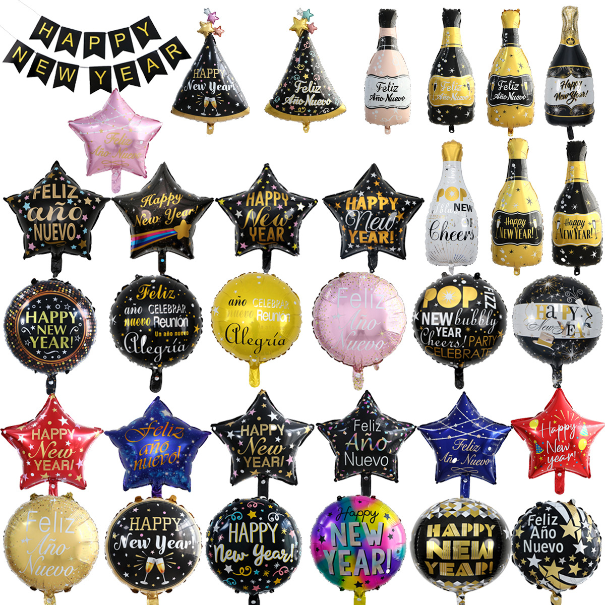 • 18 인치 해피 뉴 이어 양면 다섯개 별