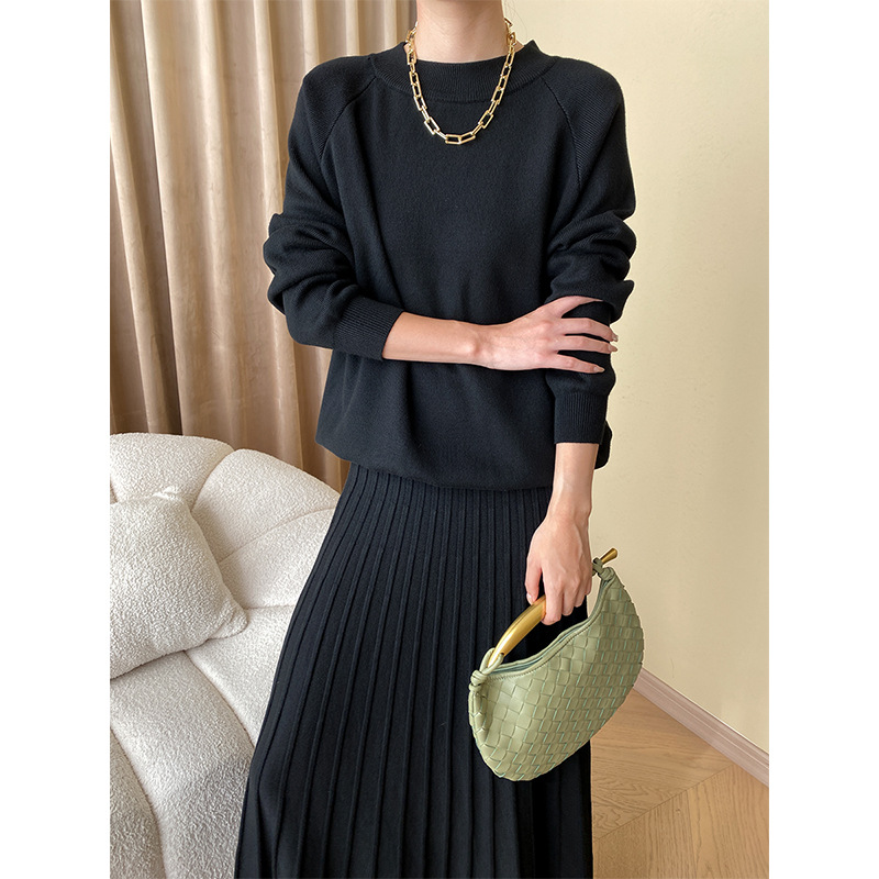 Sinan 슬리밍 페이퍼 하이 엔드 통근 기질 스웨터 주름 치마 투피스 세트 SN4739