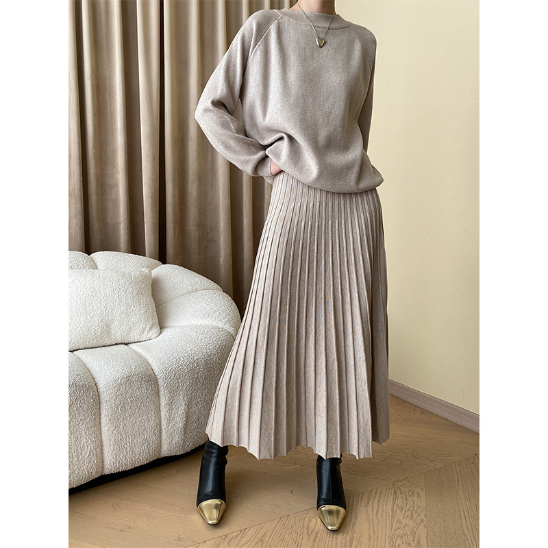 Sinan 슬리밍 페이퍼 하이 엔드 통근 기질 스웨터 주름 치마 투피스 세트 SN4739스토어 가기