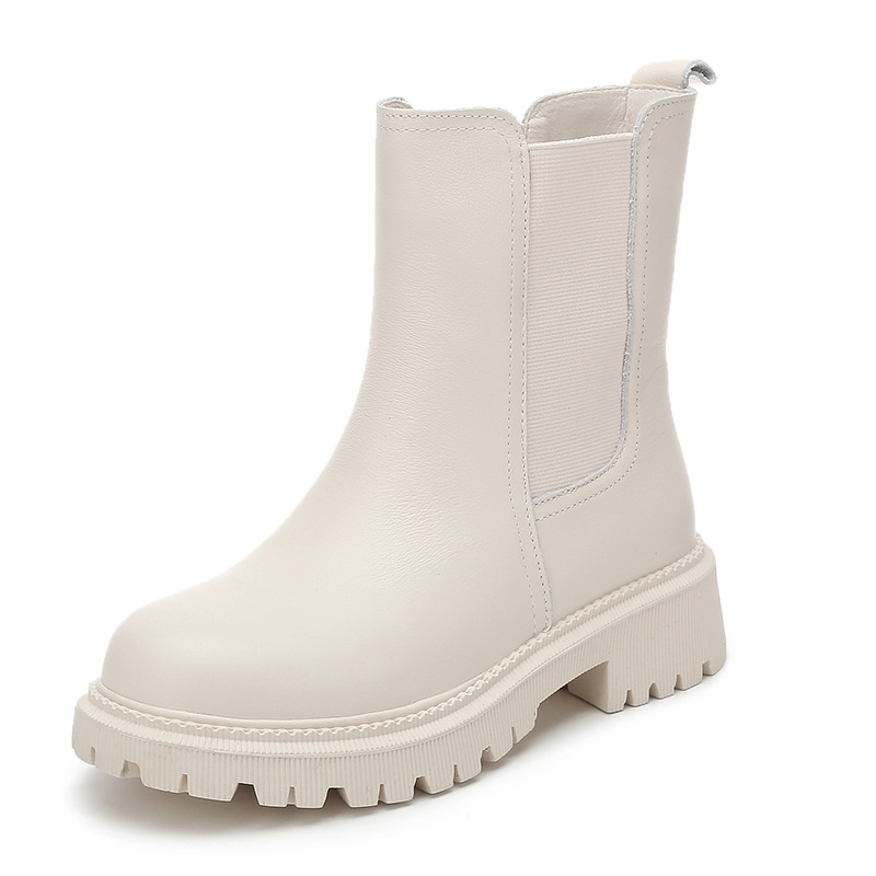 소가죽 마틴 부츠 여성용 2023 새로운 영국 스타일 슬림 룩 첼시 앵클 부츠 작은 두꺼운 바닥 중간 길이 연기 부츠스토어 가기