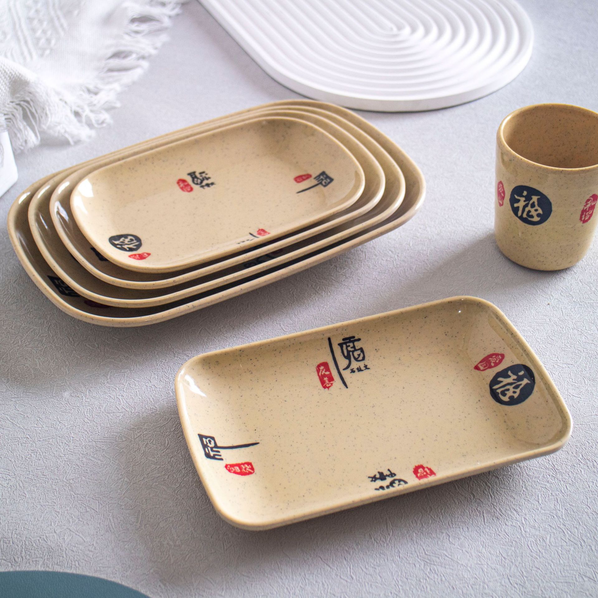 멜라민 쌀 롤 요리 중국 광장 접시 도매 쌀 긴 사각형 접시 상업 축복 단어가 두꺼워졌다 5 축복 안티 스케일링스토어 가기