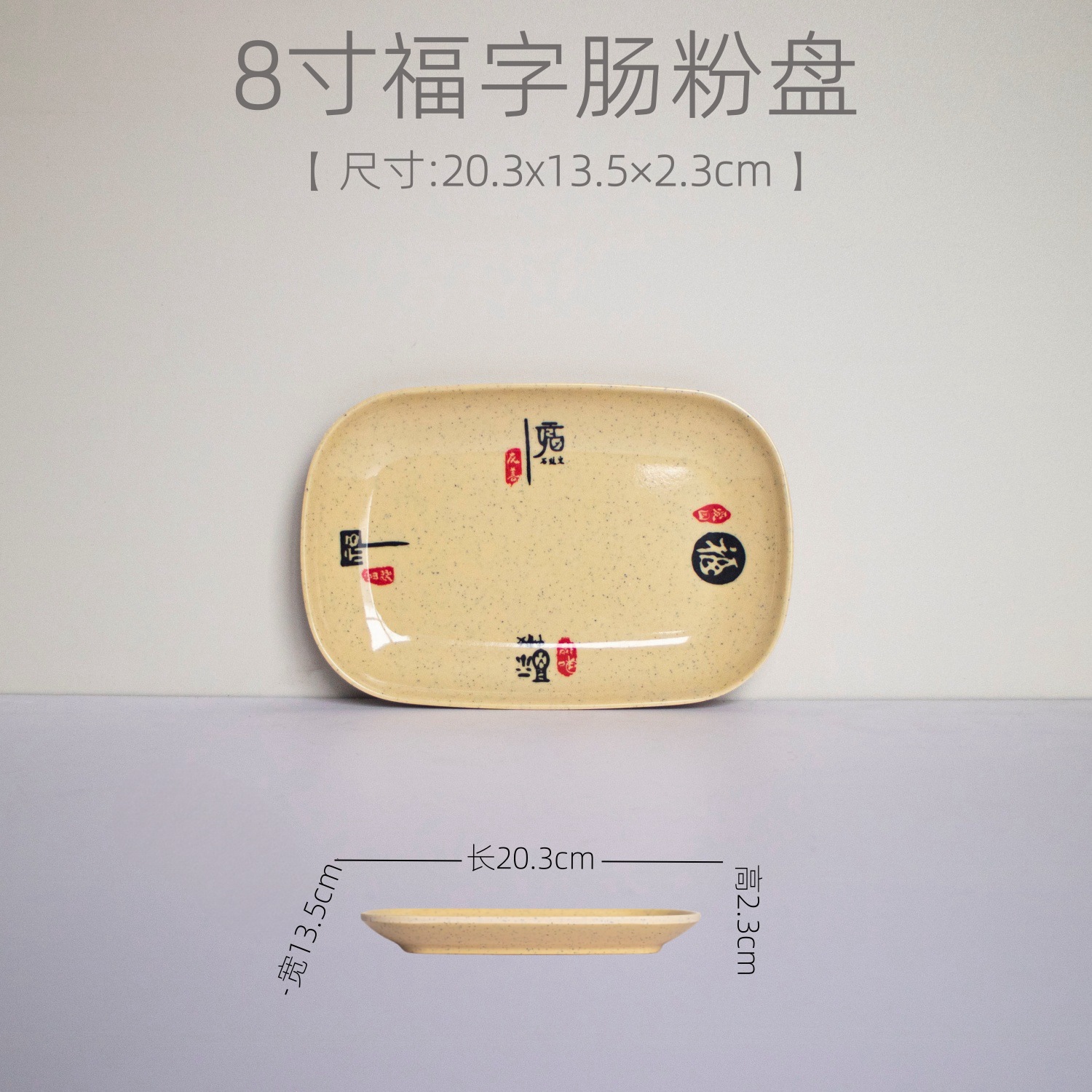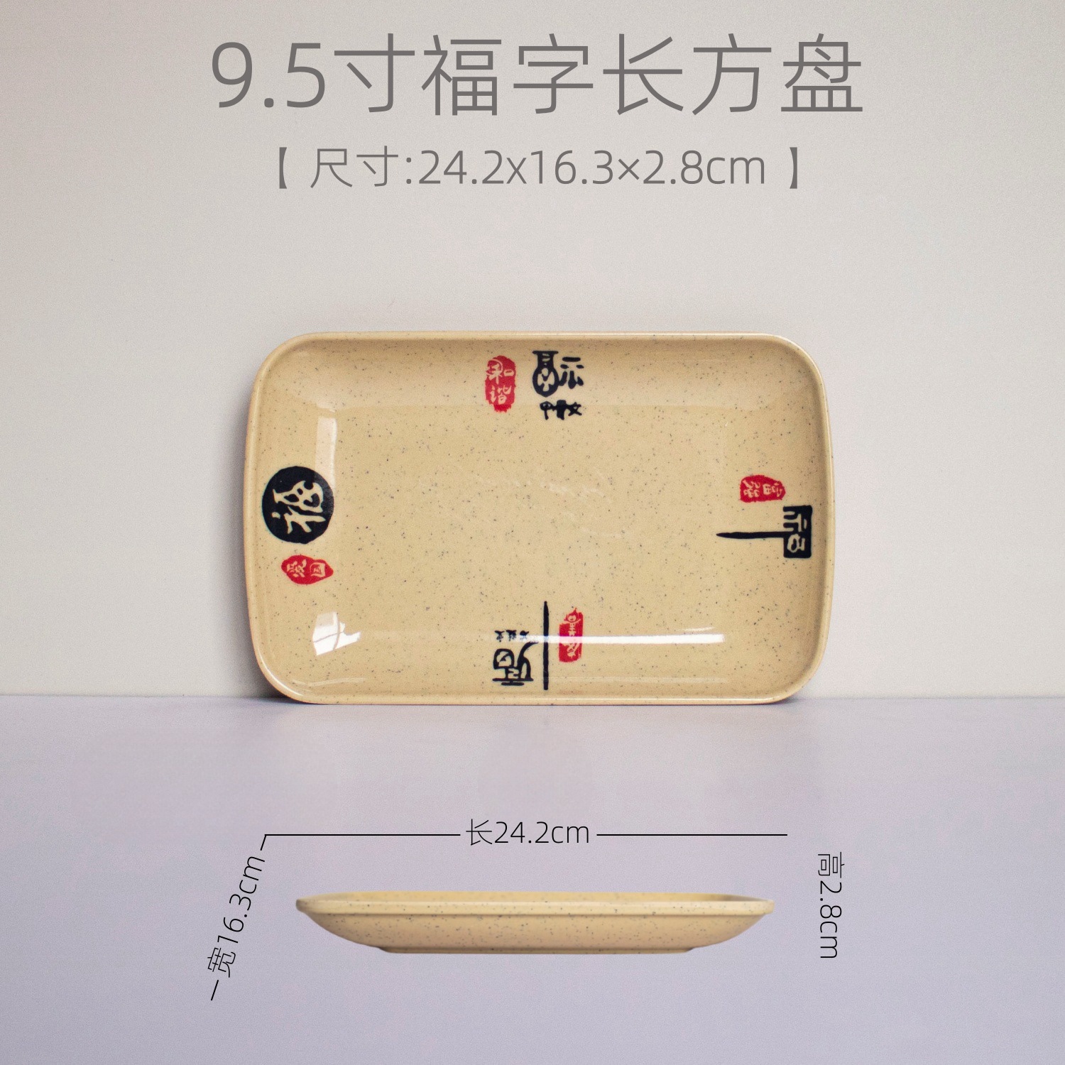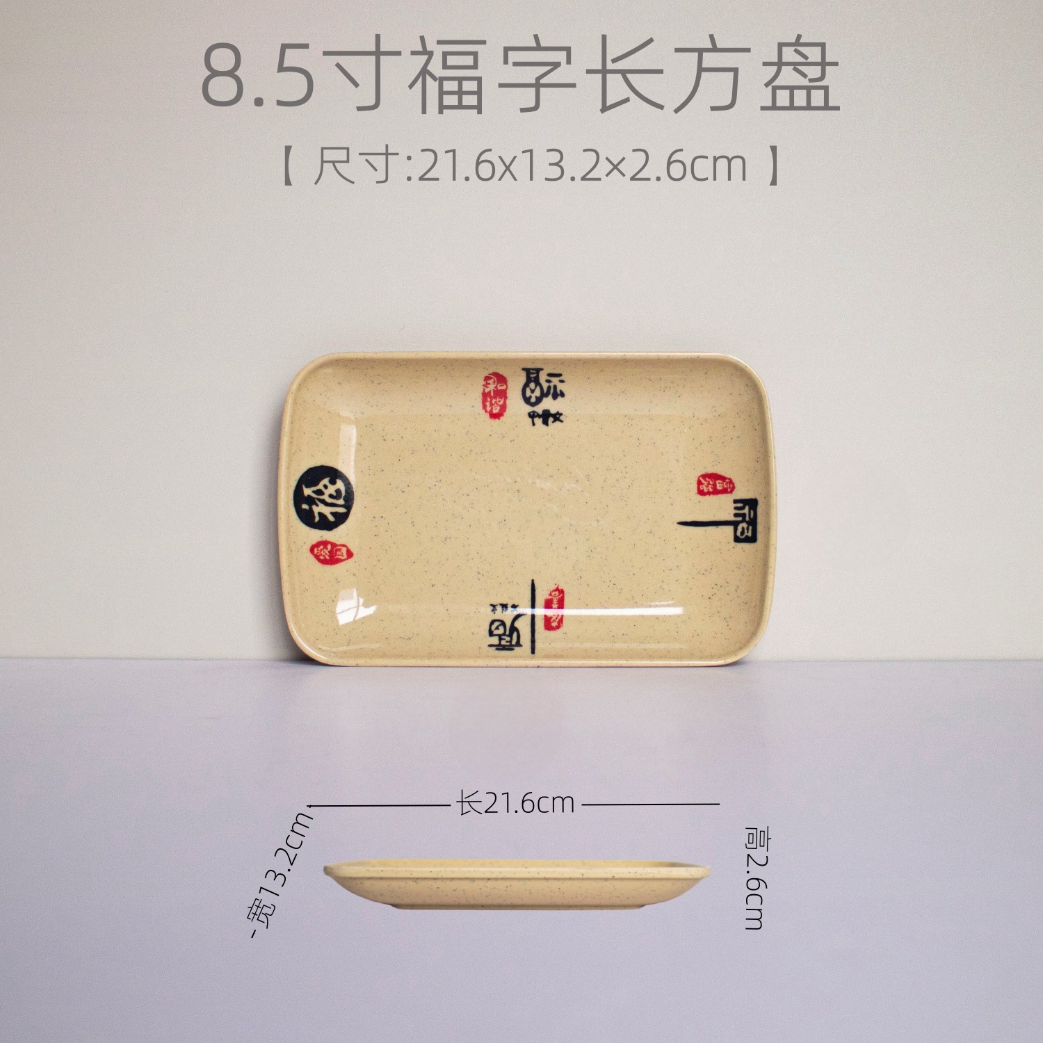 멜라민 쌀 롤 요리 중국 광장 접시 도매 쌀 긴 사각형 접시 상업 축복 단어가 두꺼워졌다 5 축복 안티 스케일링