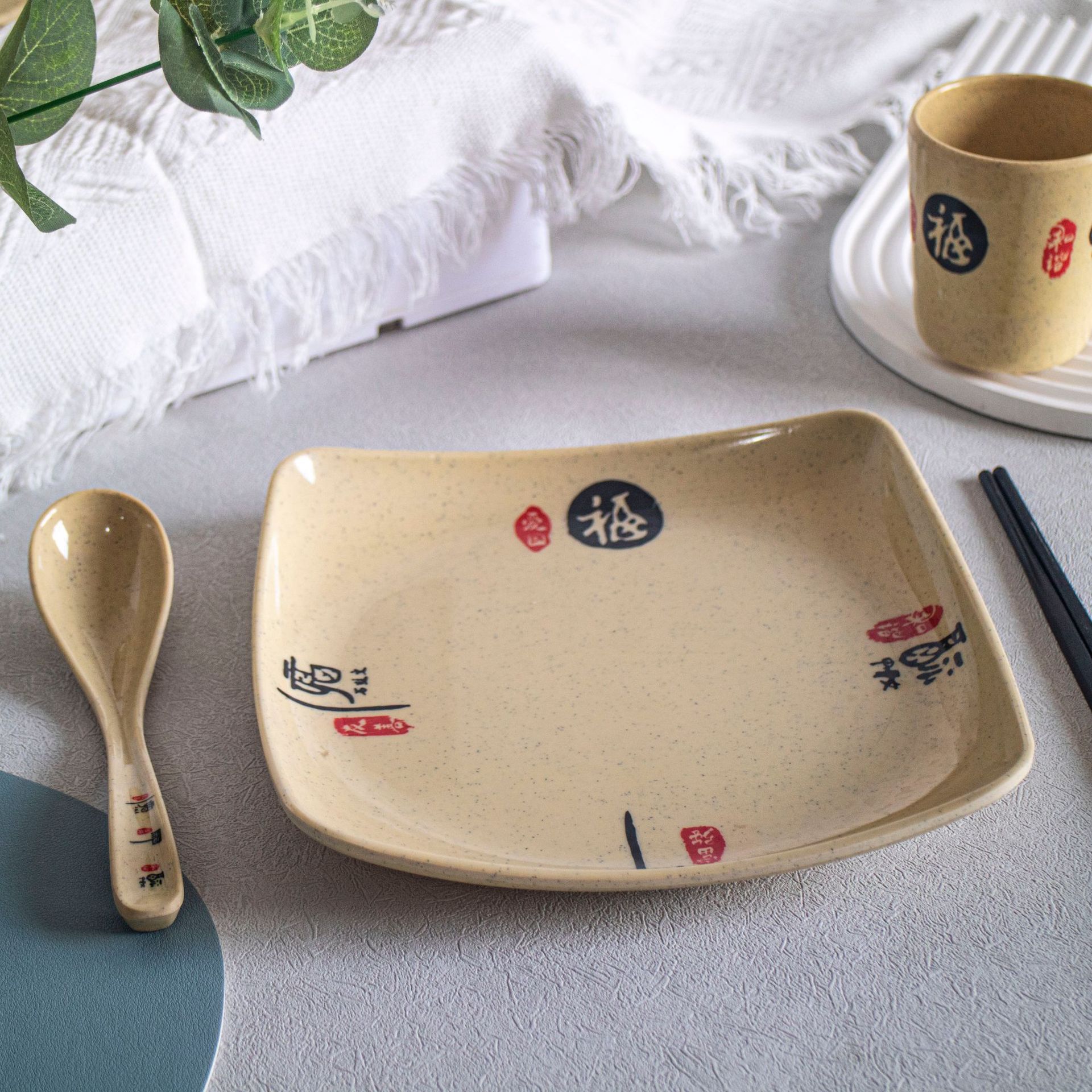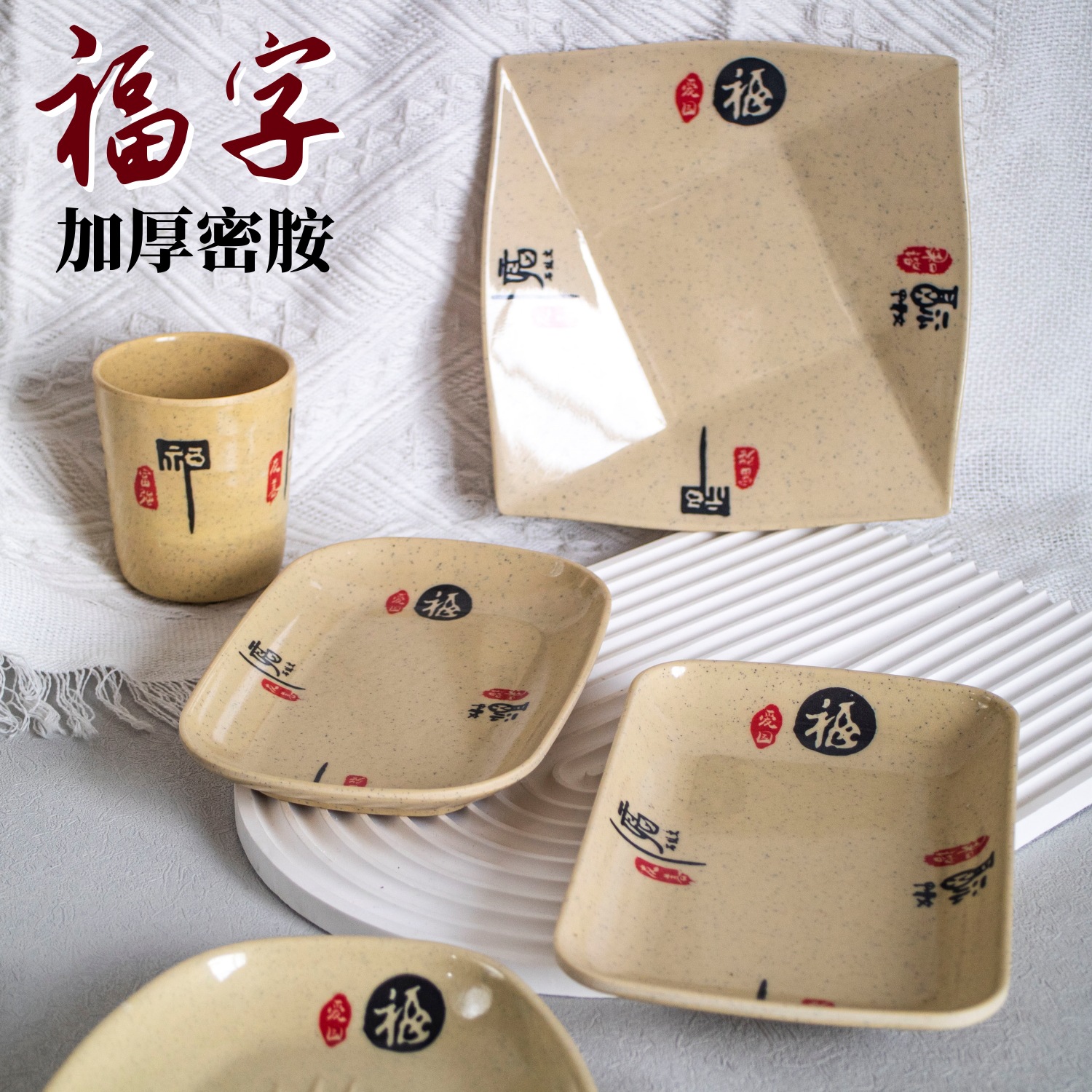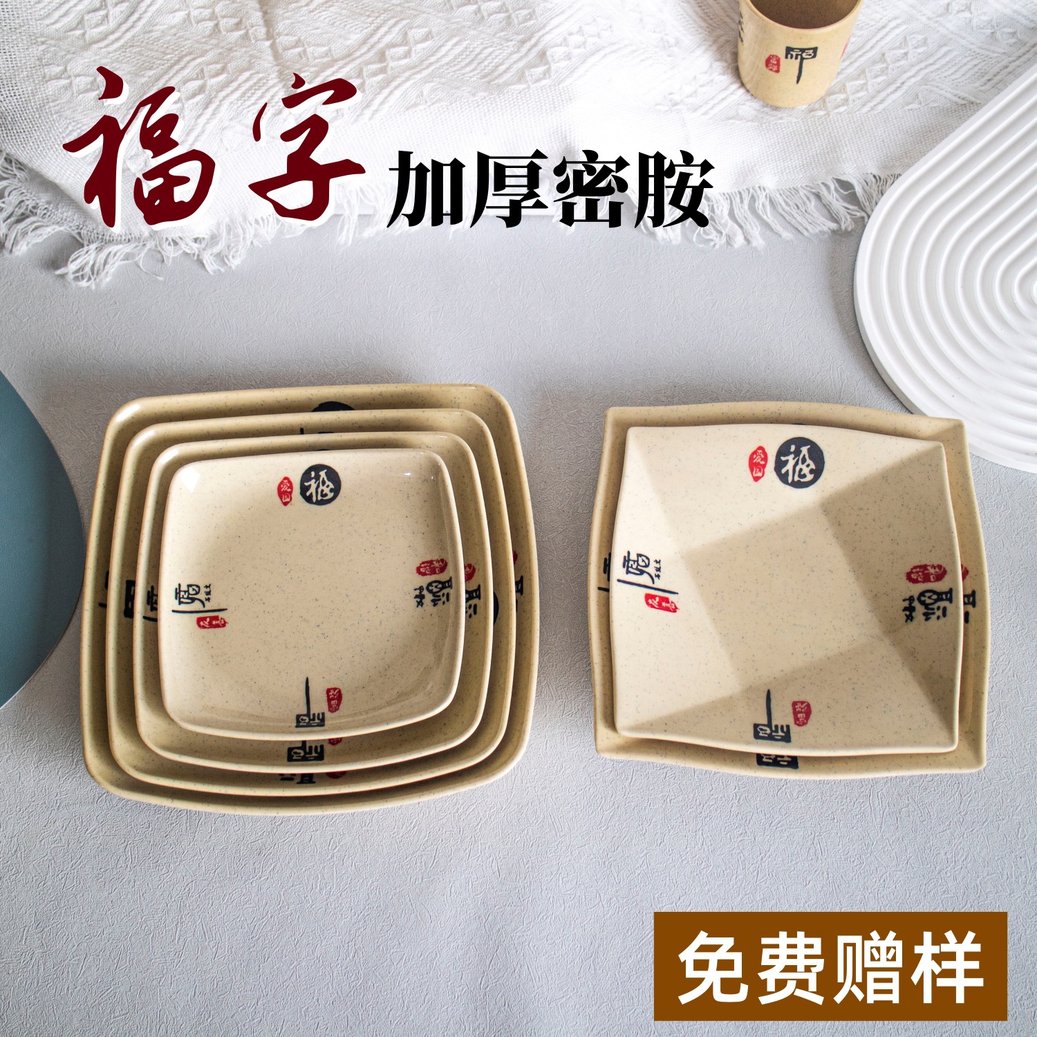 멜라민 쌀 롤 요리 중국 광장 접시 도매 쌀 긴 사각형 접시 상업 축복 단어가 두꺼워졌다 5 축복 안티 스케일링