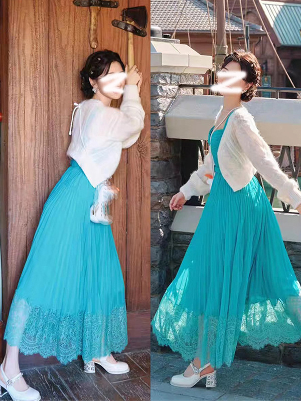 Xiaotong 같은 스타일 옷 슬링 원피스 기질 중간 길이 보헤미안 원피스 고급 스웨터 세트