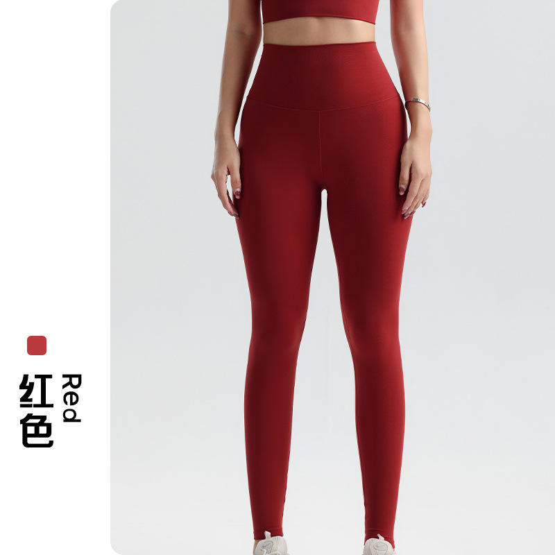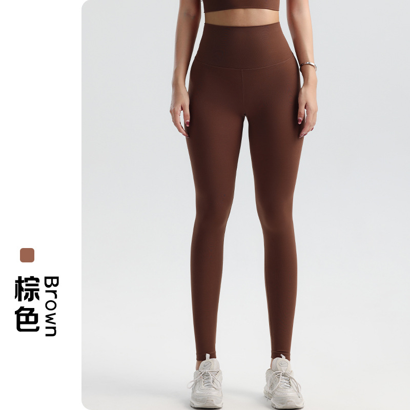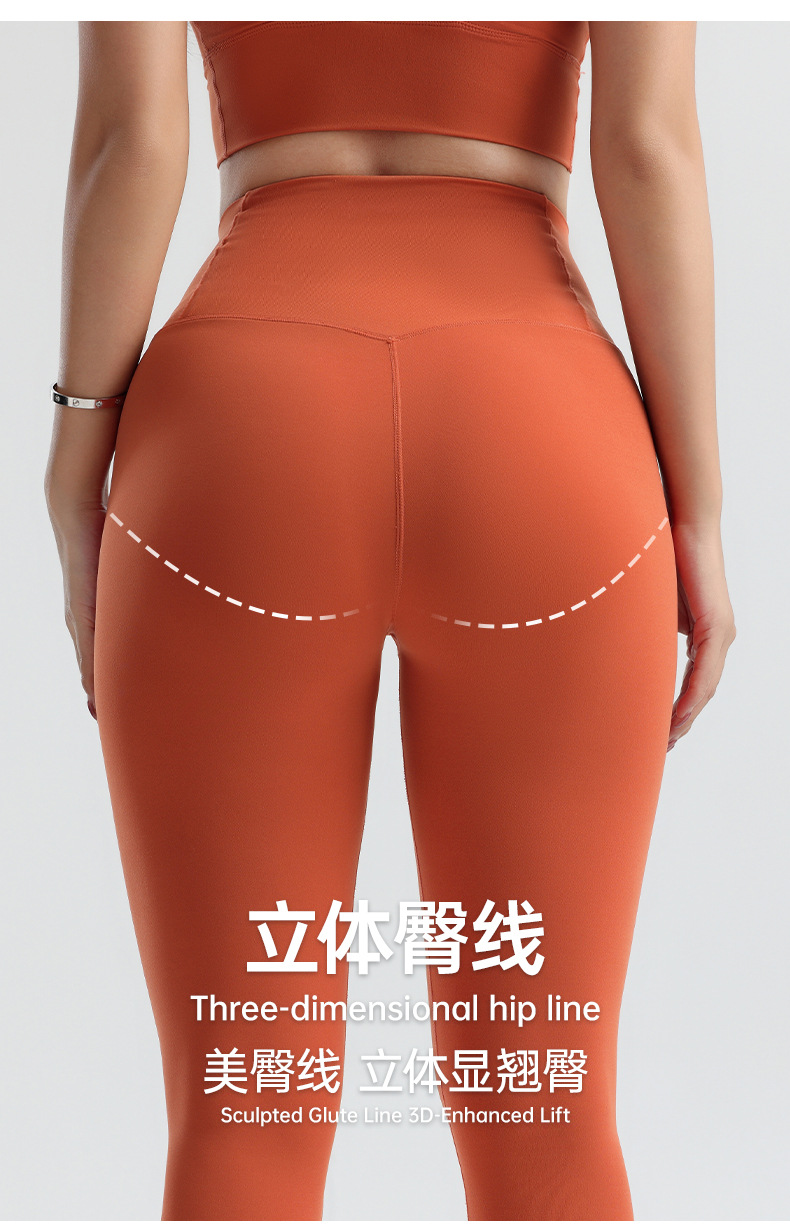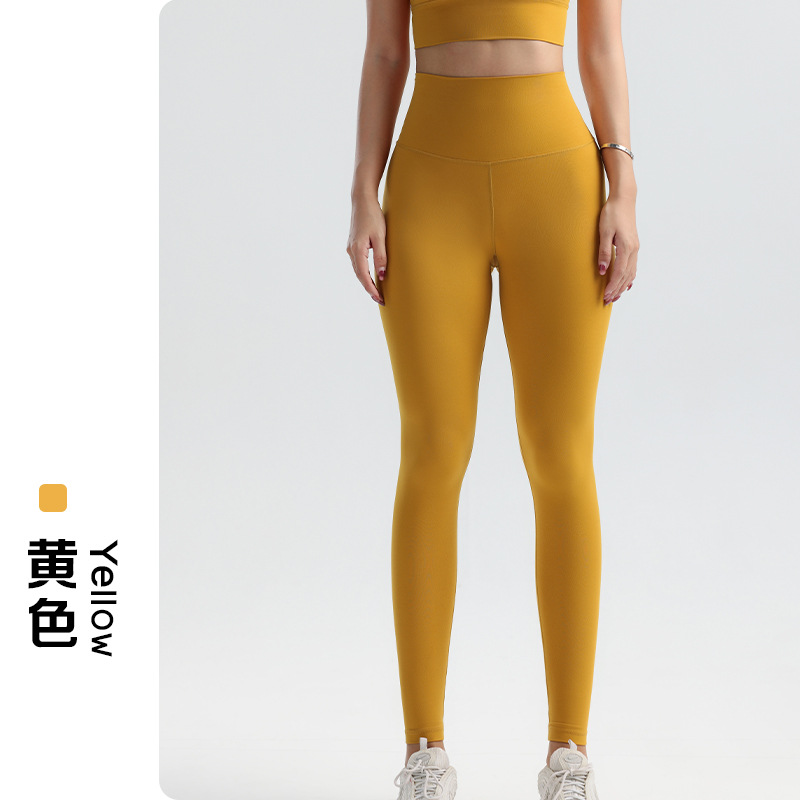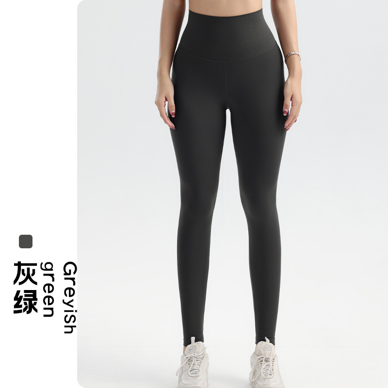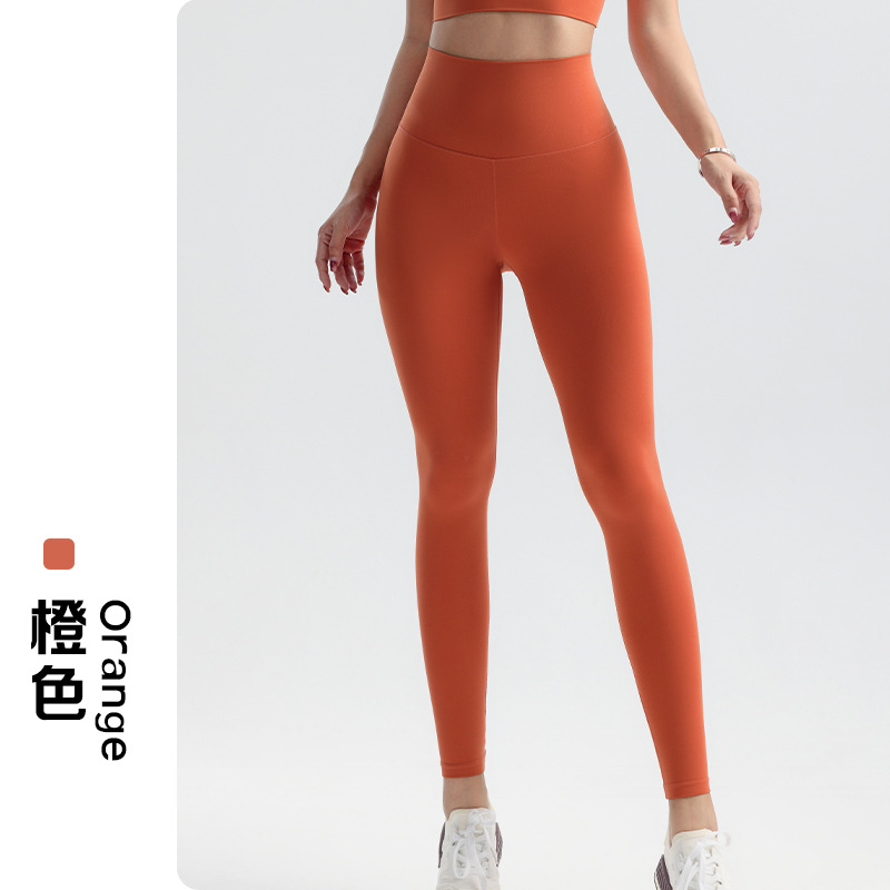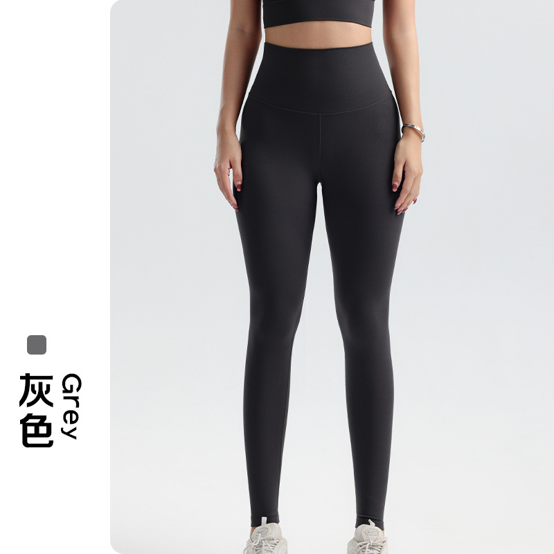 가을 겨울 아웃도어 베이스 레이어 누드 느낌 요가 팬츠, 유럽 및 미국 요가복, 하이웨이스트 피치 힙업 피트니스 팬츠, 여성용 긴바지, 고탄성