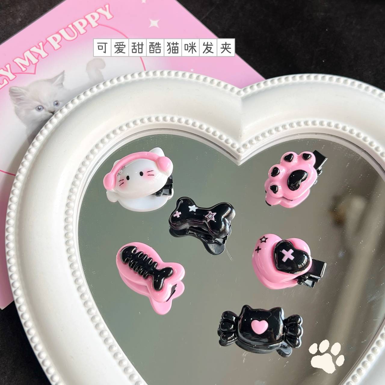 펑크 고양이 머리핀 키티 인 핫 걸 y2k 사이드 클립 틈새 소녀 귀여운 학생 앞머리 클립 머리 장식