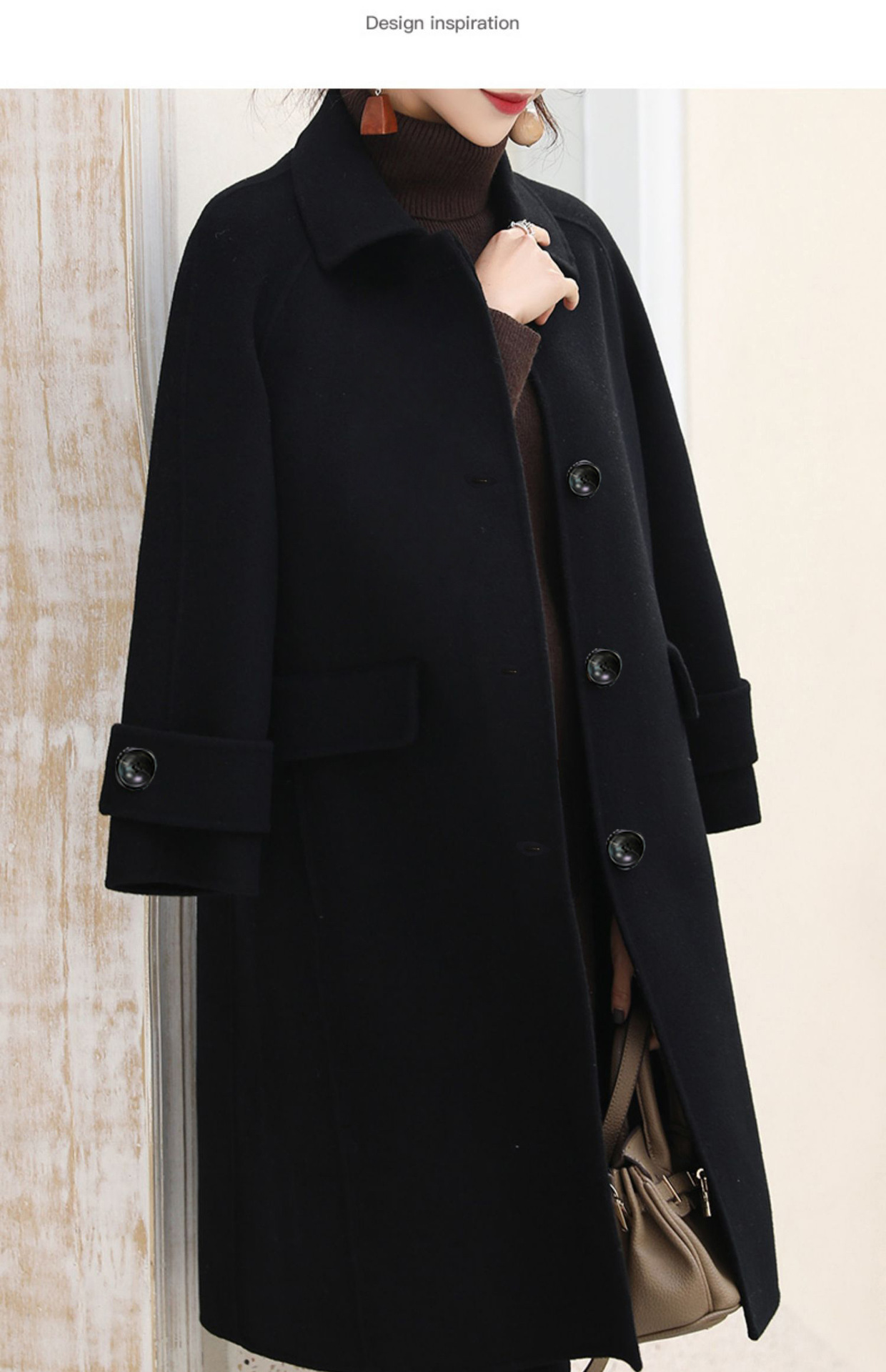 2024 가을 겨울 신상 헤링본 모직 스트레이트 고급 코트 기질 캐주얼 중간 길이 라펠 모직 코트