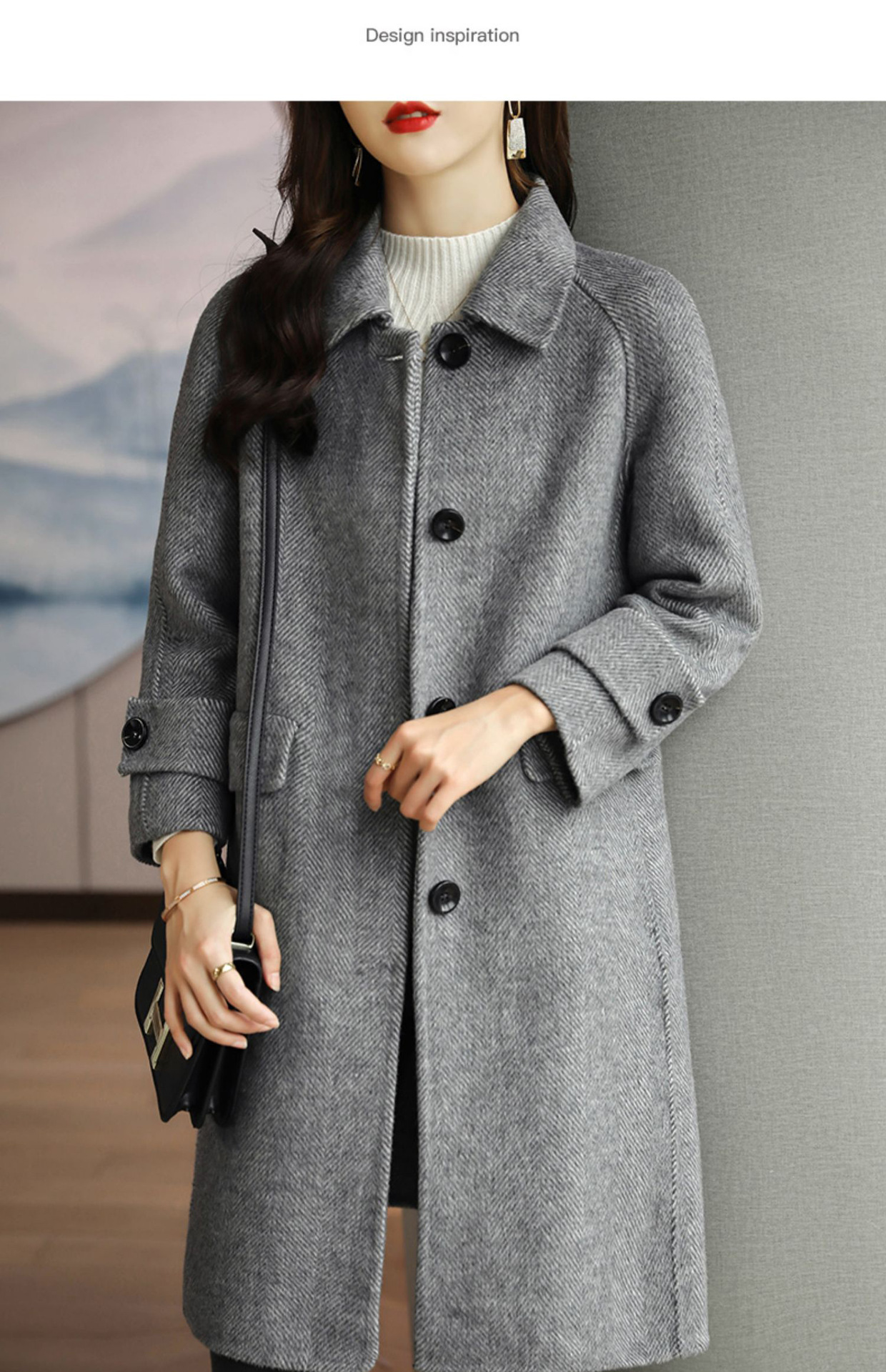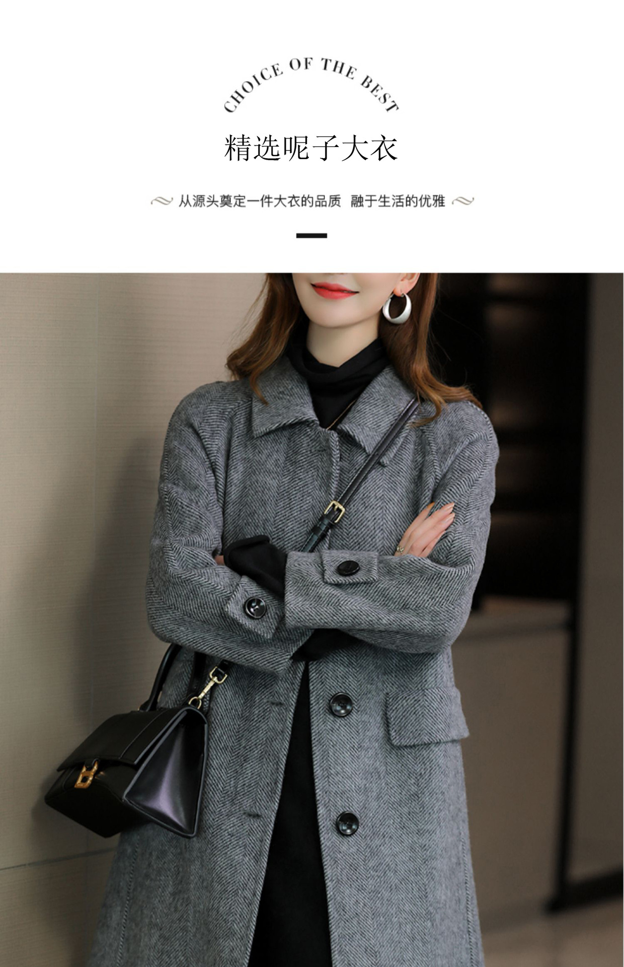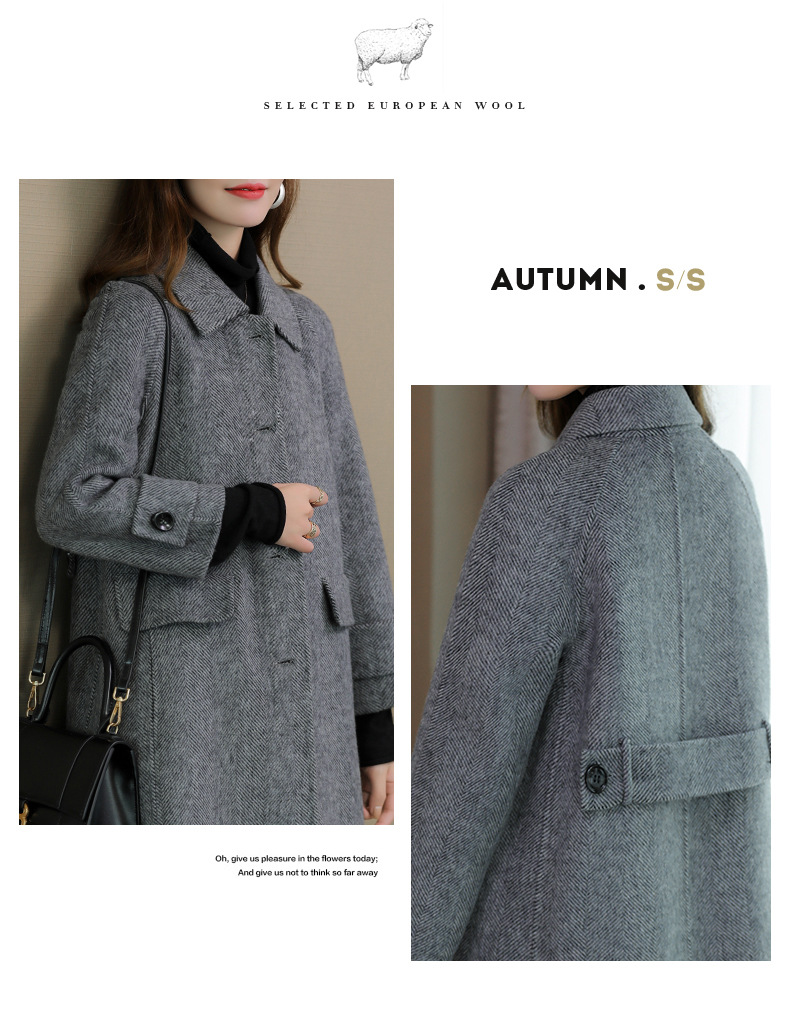 2024 가을 겨울 신상 헤링본 모직 스트레이트 고급 코트 기질 캐주얼 중간 길이 라펠 모직 코트스토어 가기