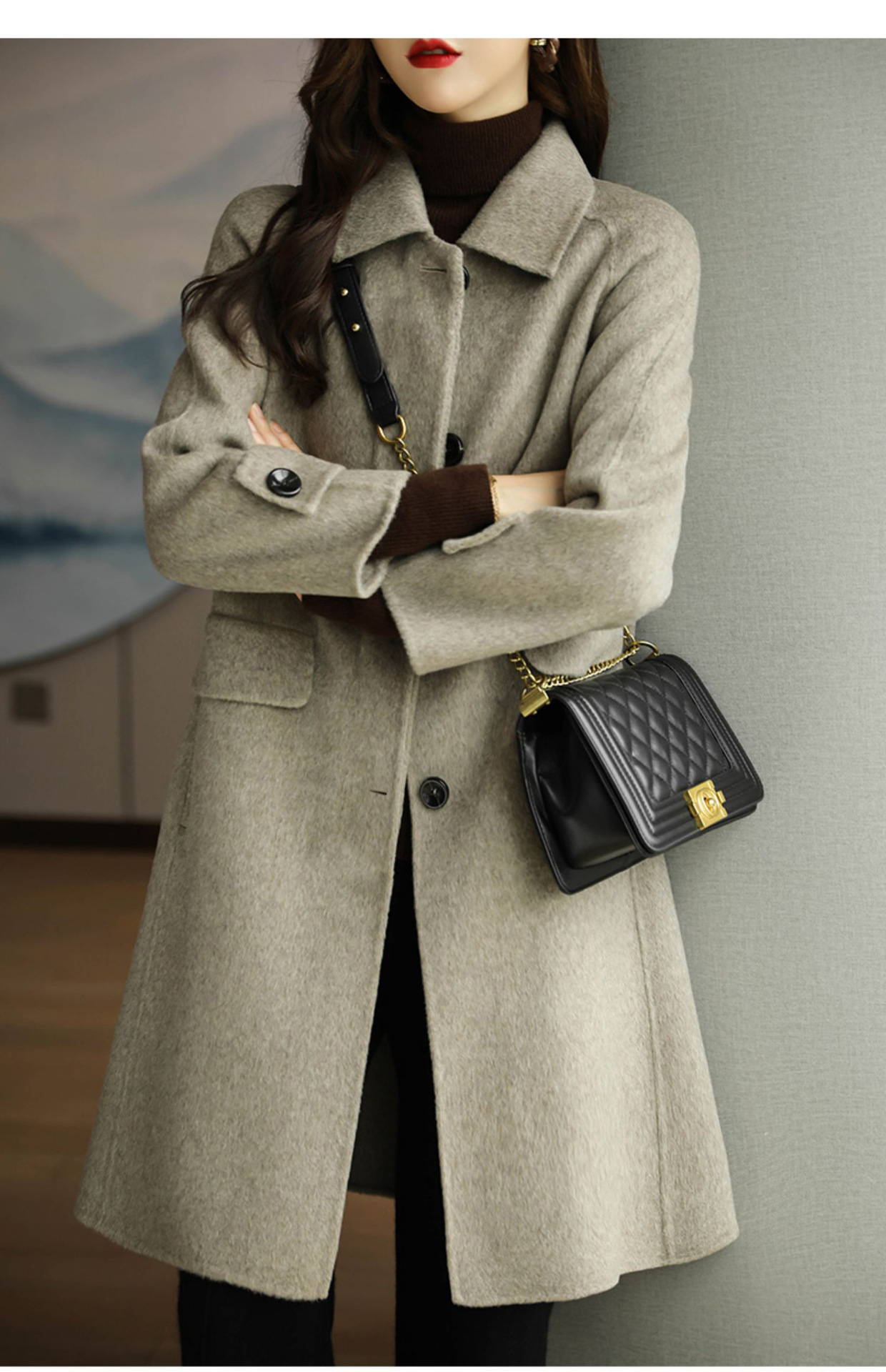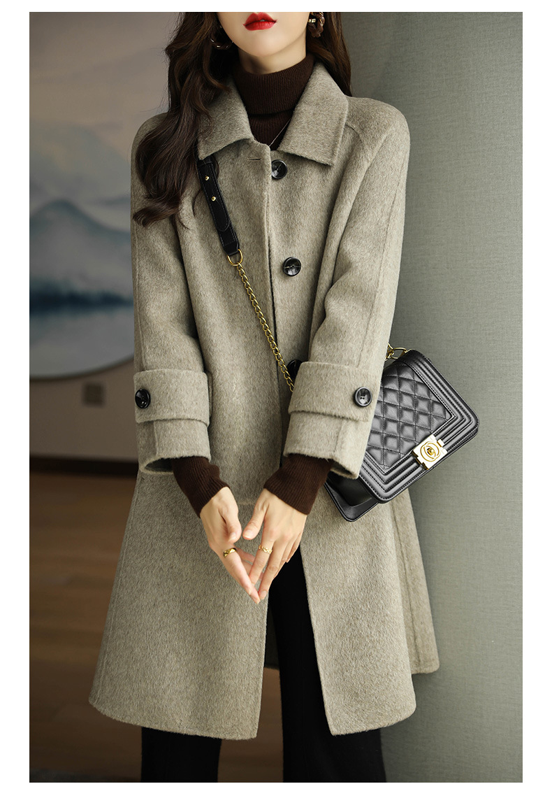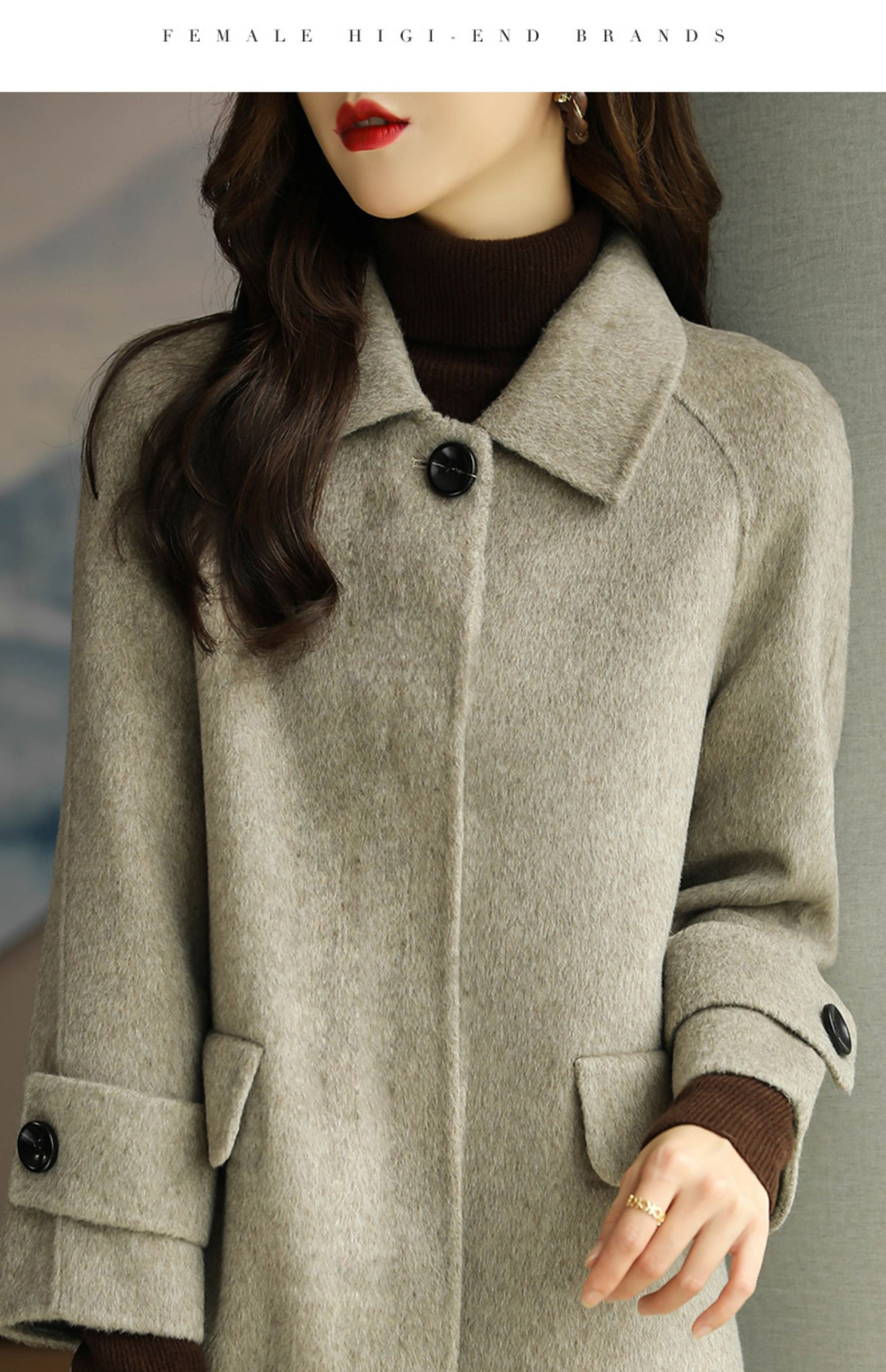 2024 가을 겨울 신상 헤링본 모직 스트레이트 고급 코트 기질 캐주얼 중간 길이 라펠 모직 코트스토어 가기