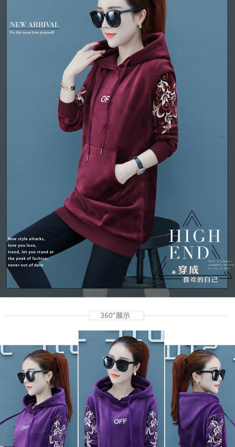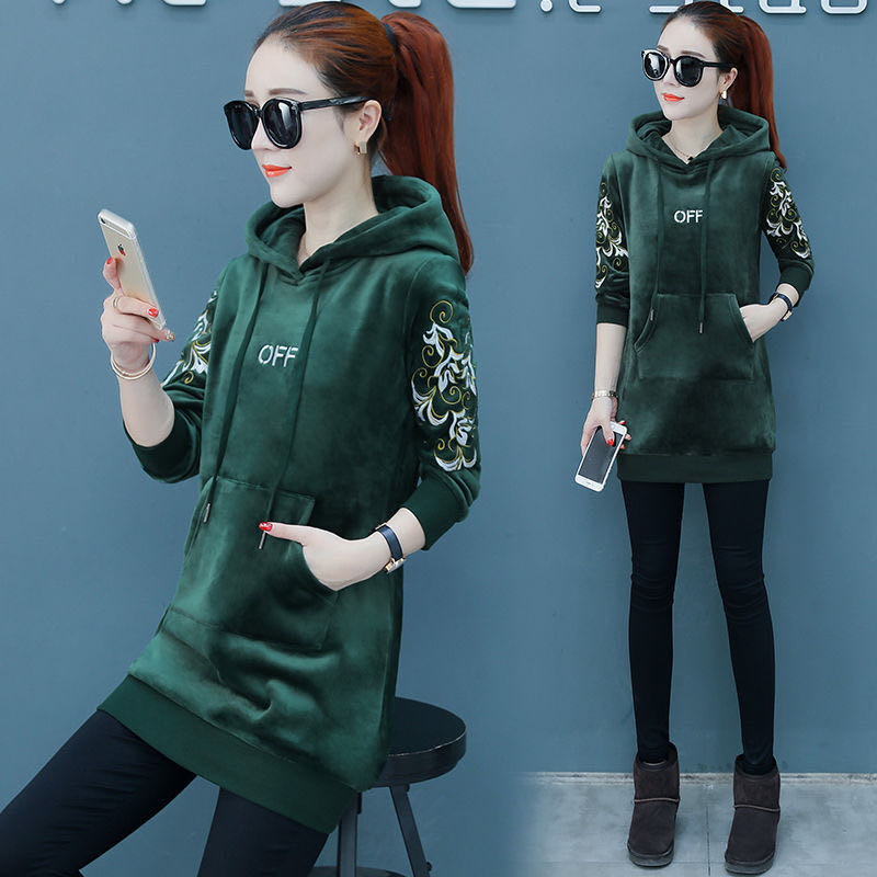 양면 벨벳 중간 길이 풀오버 스웨터 여성 후드 가을과 겨울 골드 벨벳 기모 두꺼운 겨울 따뜻한 탑 유행스토어 가기
