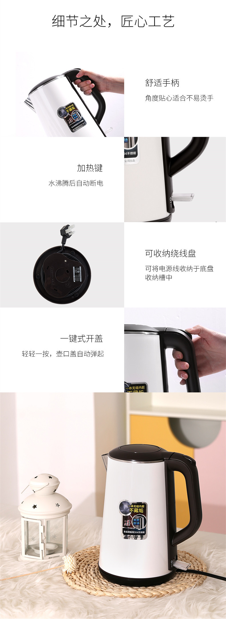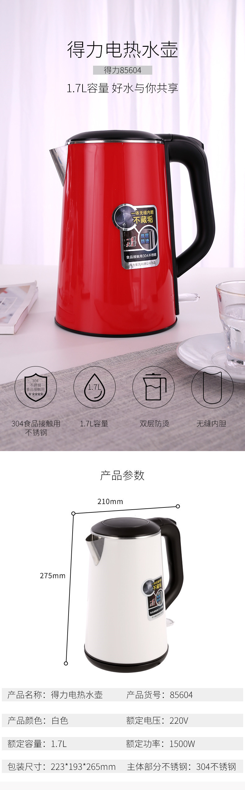 델리 85604 전기 주전자 홈 오피스 식품 학년 304 더블 레이어 화상 방지 스테인레스 스틸 주전자 도매